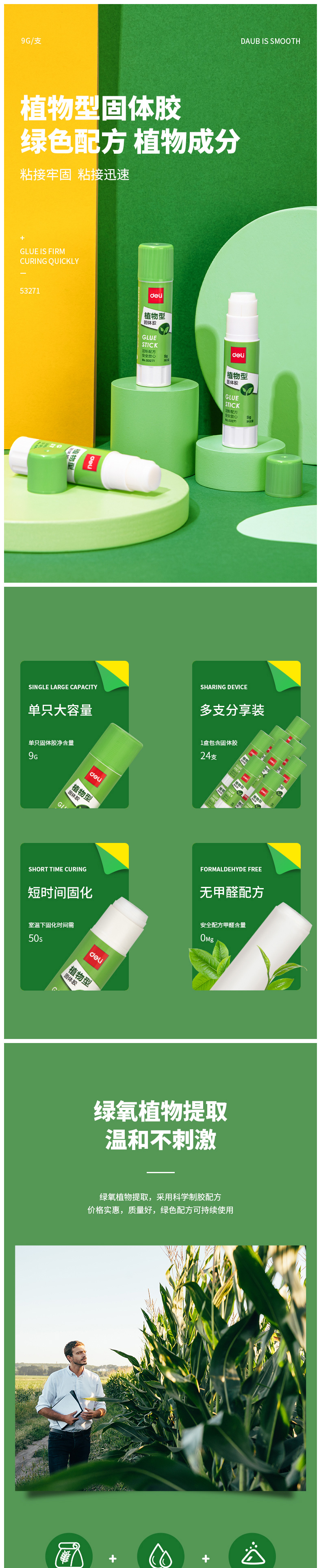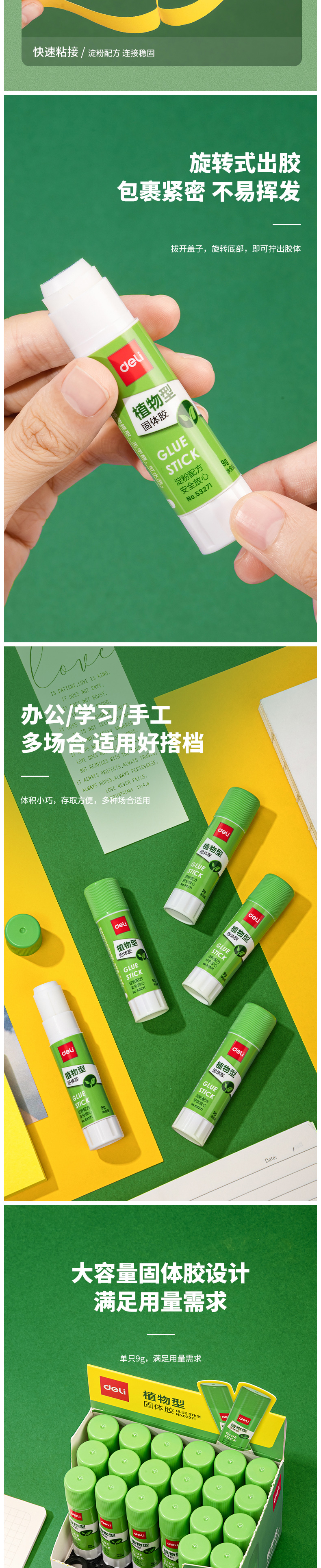 得力53271植物固体胶 白色 9g/支 24支/盒 单位:盒