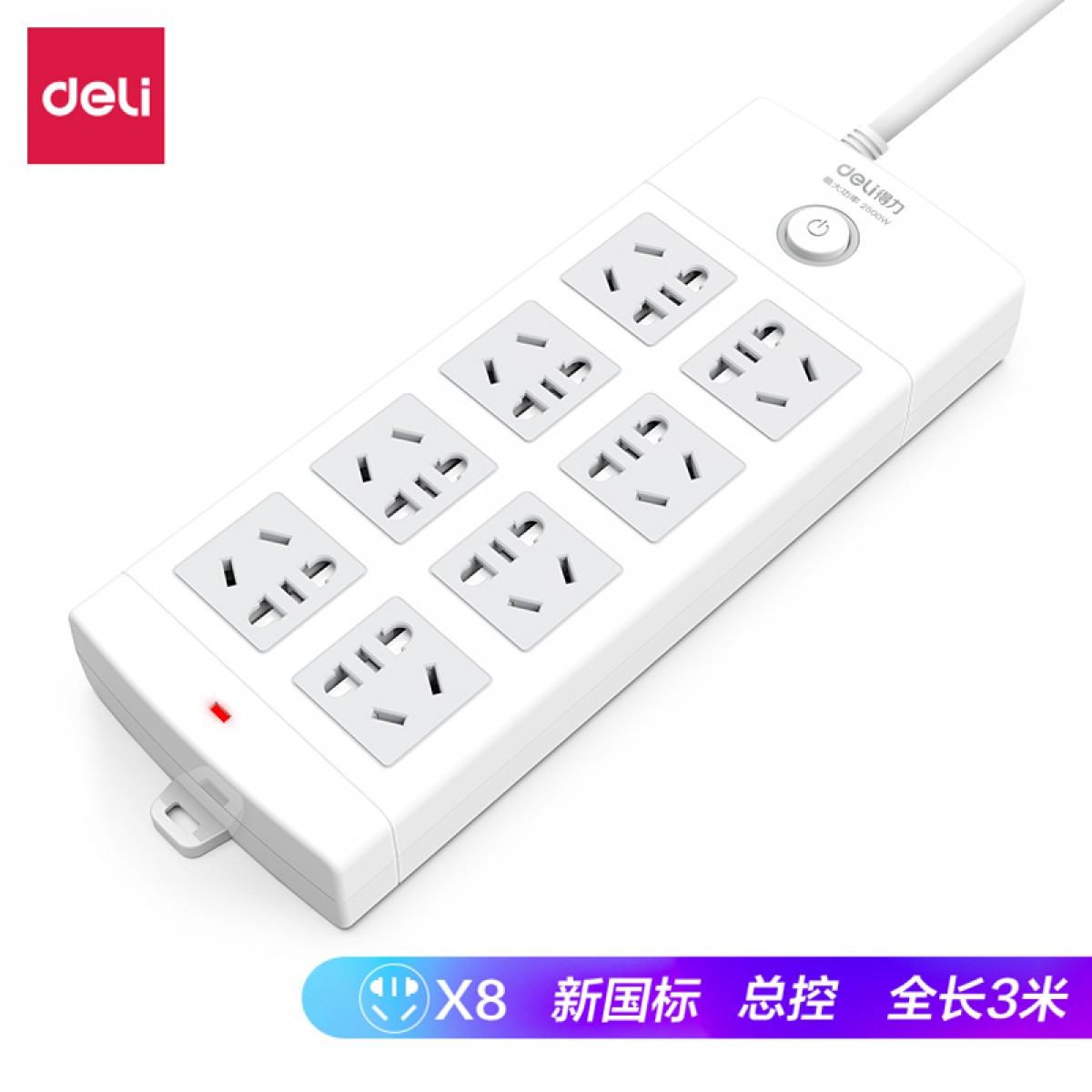 得力18211插座 8组 3米 PVC袋装 白色 单位:个