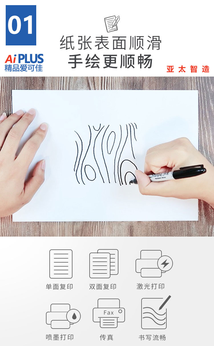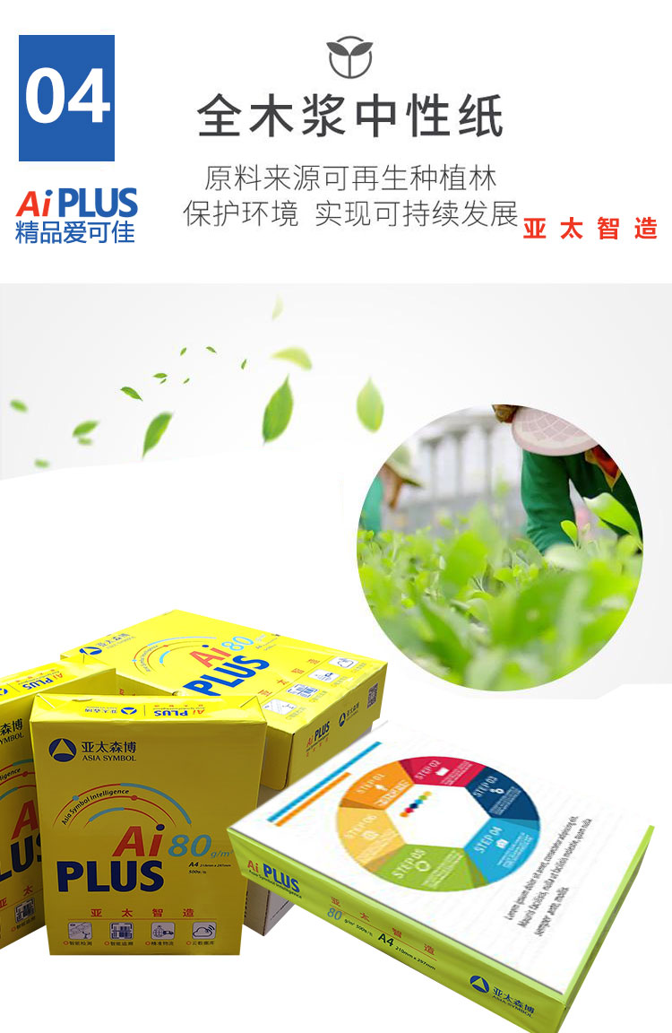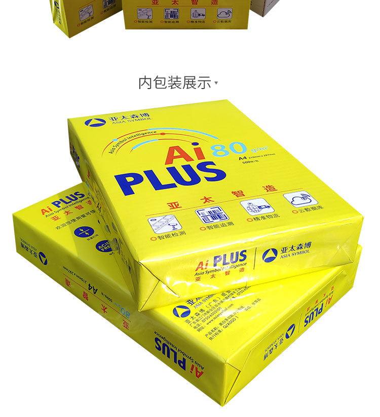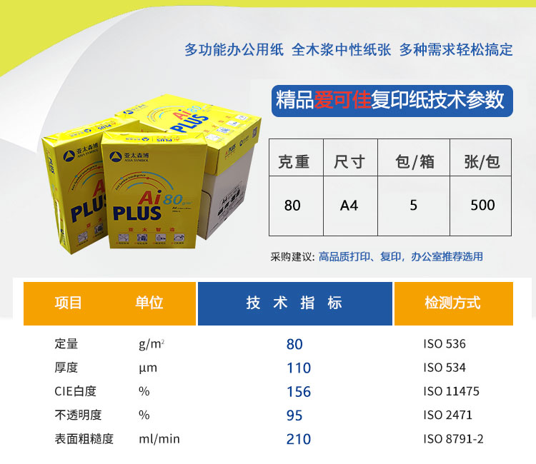 商品名称:精品爱可佳Ai PLUS复印纸 A4 80g 500张/包 5包/箱 单位:箱