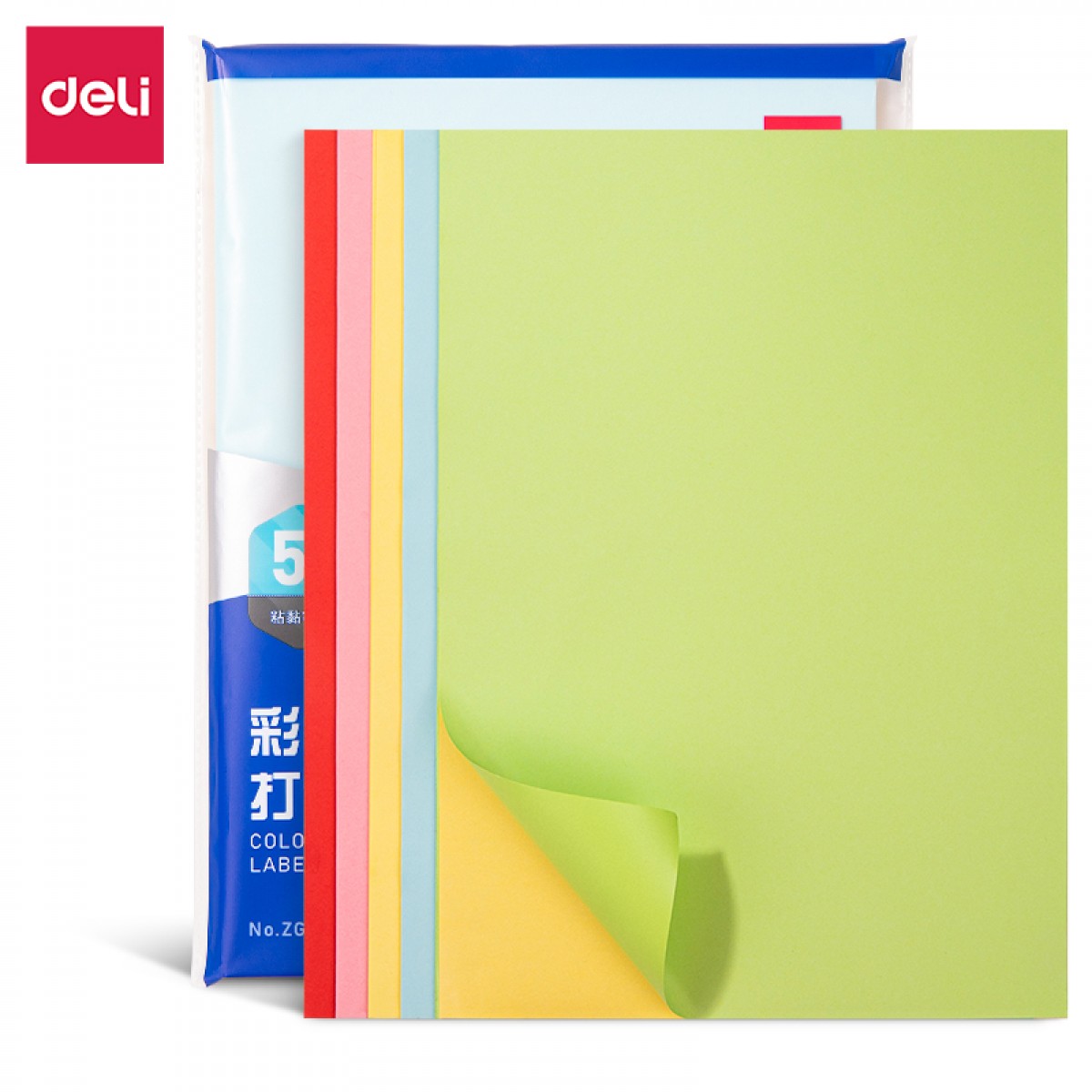 得力ZG001彩色不干胶标贴打印纸 5色/包 50张/包