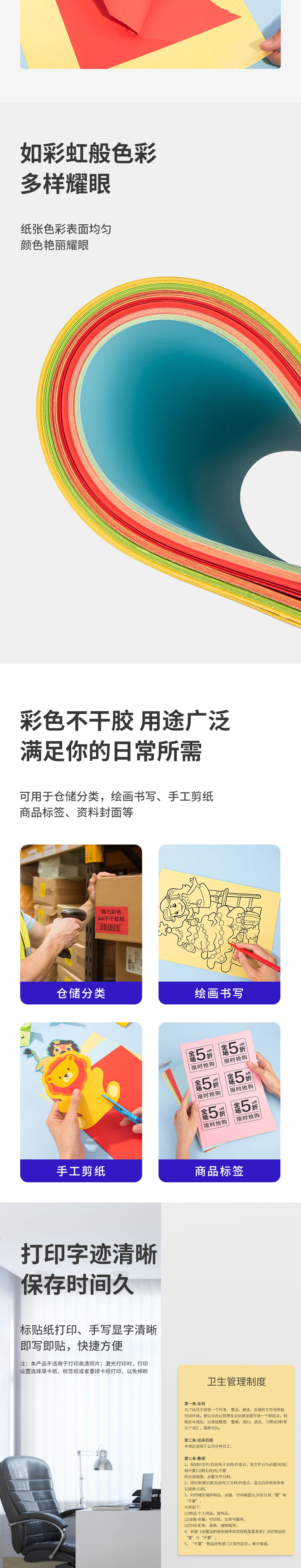 商品名称:得力ZG001彩色不干胶标贴打印纸 5色/包 50张/包 单位:包