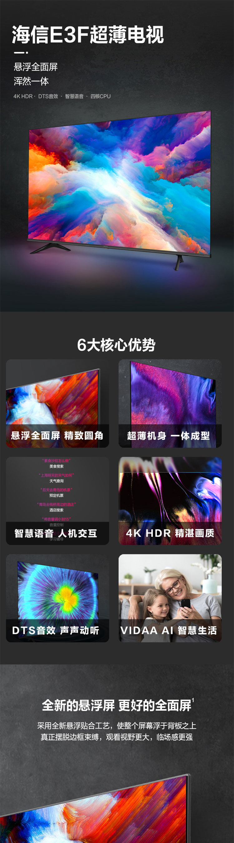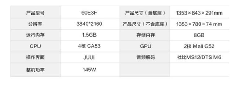 商品名称:海信60E3F液晶平板电视机 60英寸 4K超清 单位:台