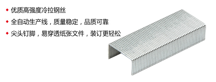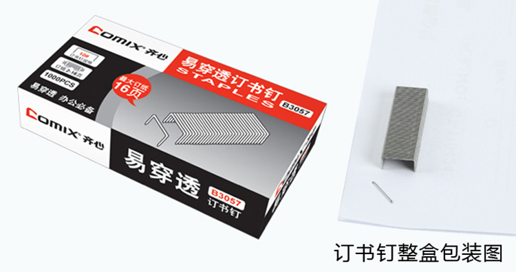 商品名称:齐心B3057 10#订书钉 可订16页 1000枚/盒 10盒/包