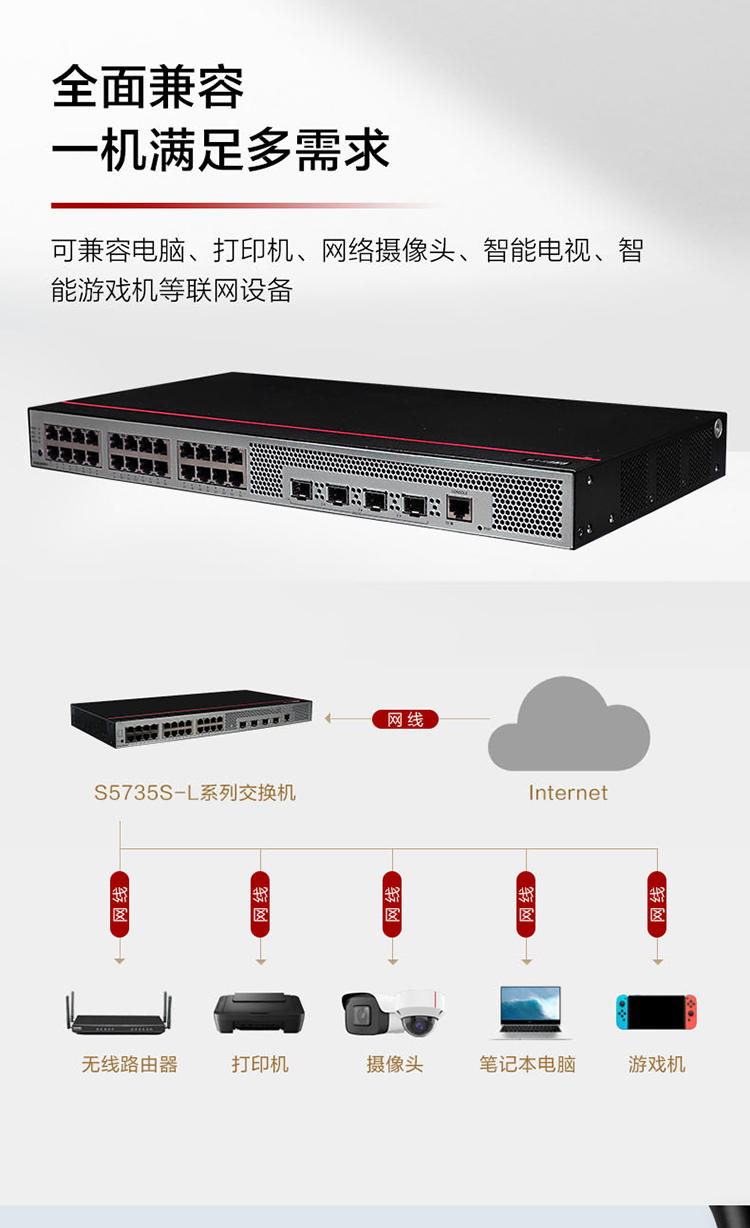 商品名称:华为S5735S-L24T4X-QA2交换机 24口千兆电口+4口万兆光口 单位:台