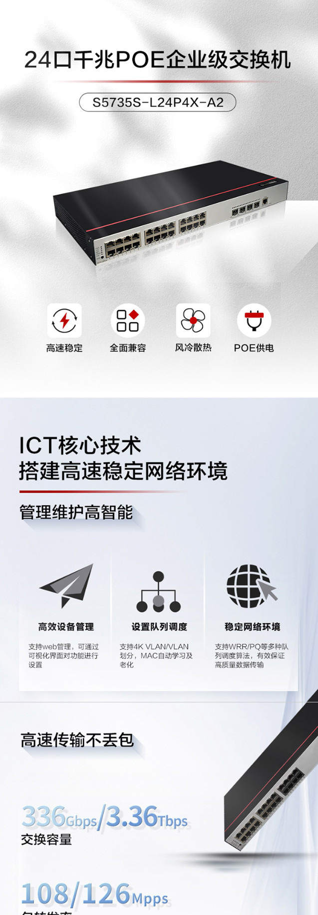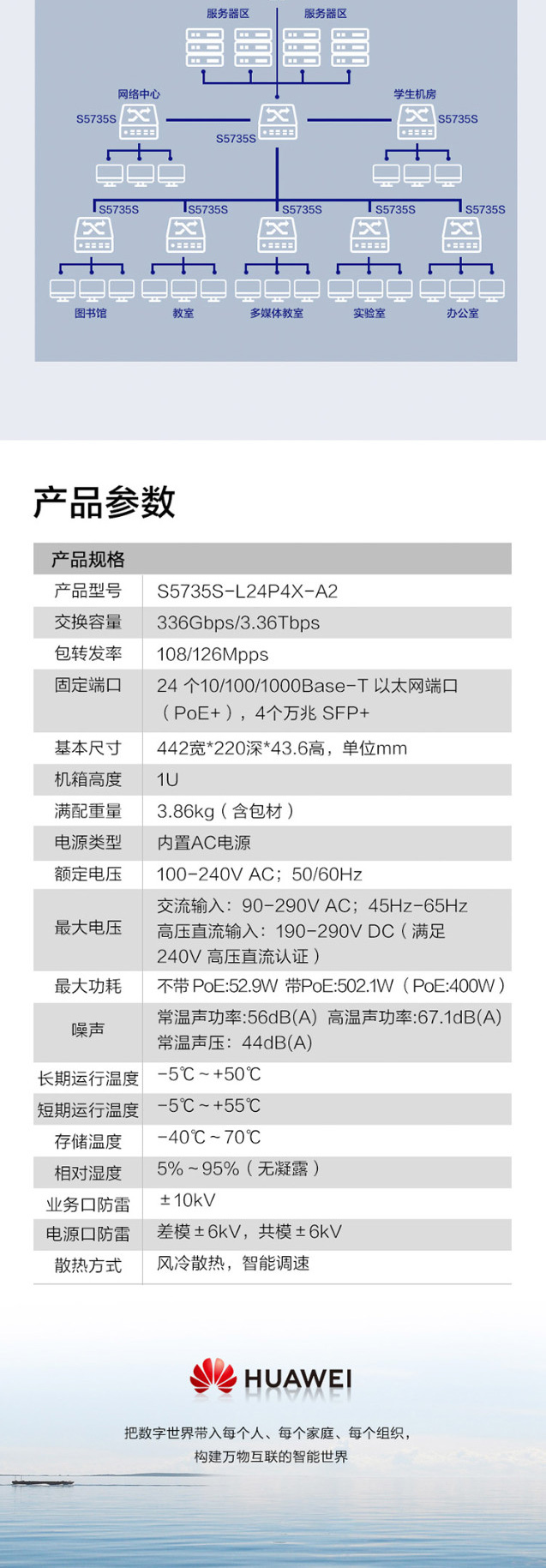 商品名称:华为S5735S-L24P4X-A2交换机 24口千兆电口+4口万兆光口 单位:台
