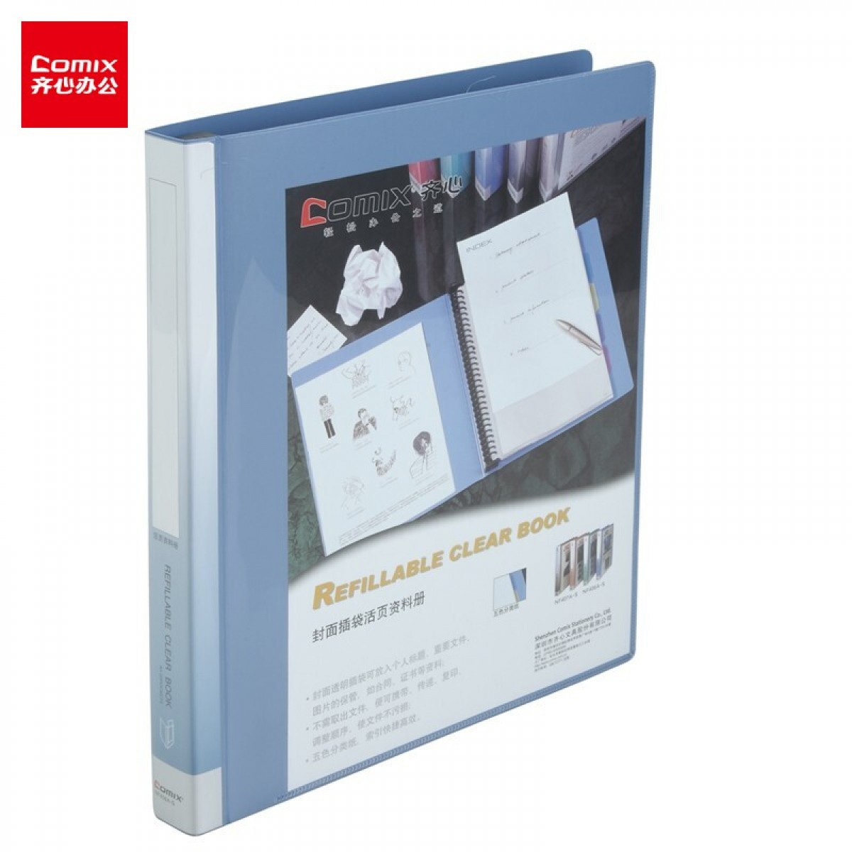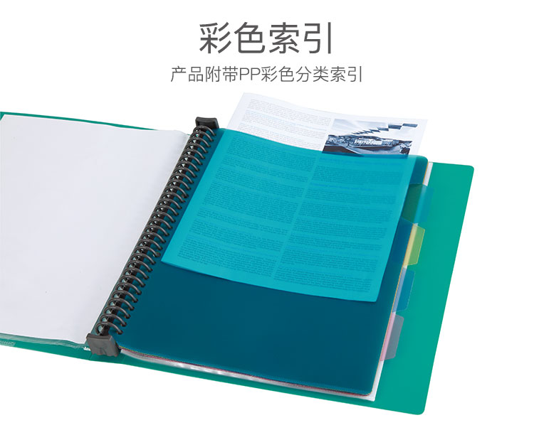 齐心NF406A-S活页资料册 A4 20袋30孔塑胶夹 蓝色 单位:个