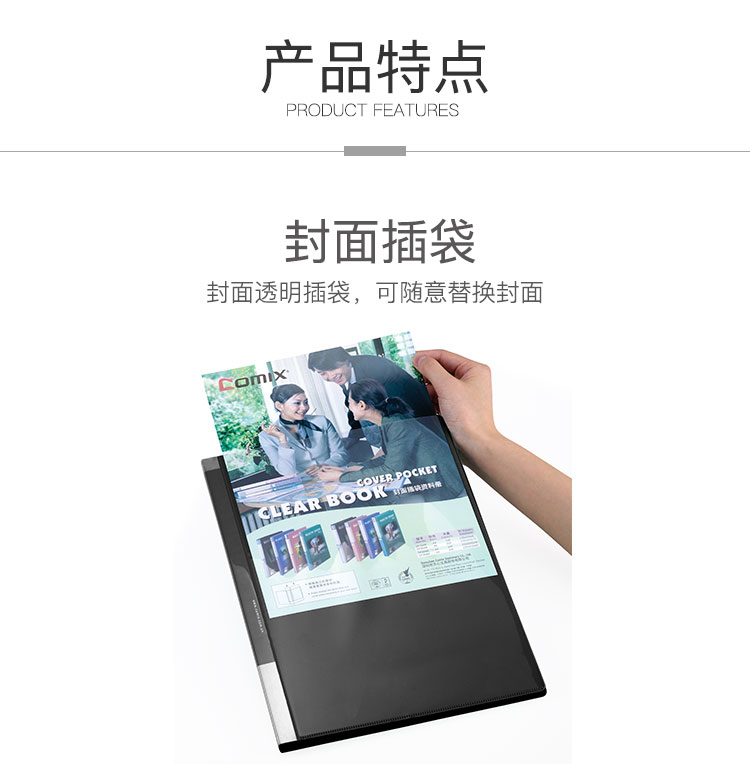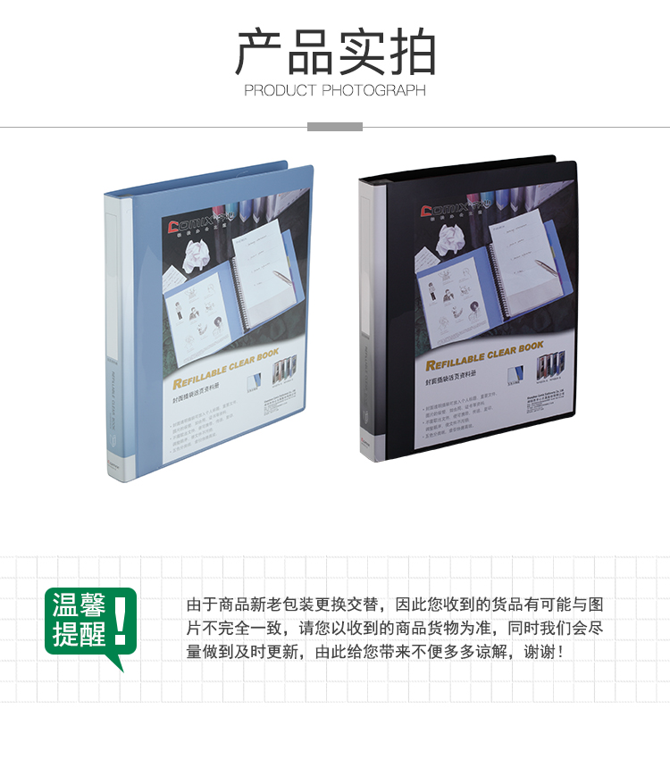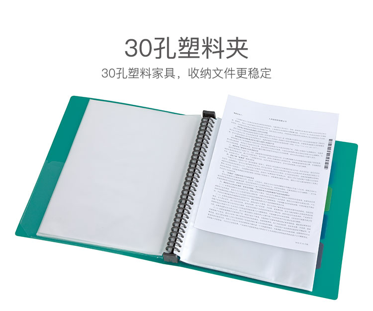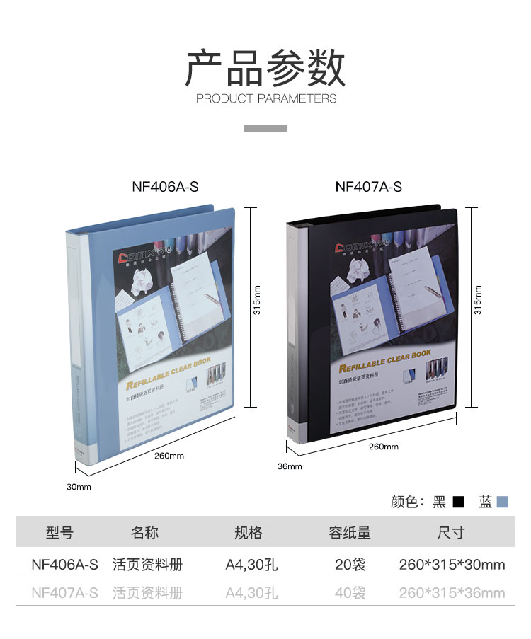 商品名称:齐心NF406A-S活页资料册 A4 20袋30孔塑胶夹 蓝色 单位:个