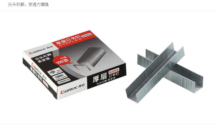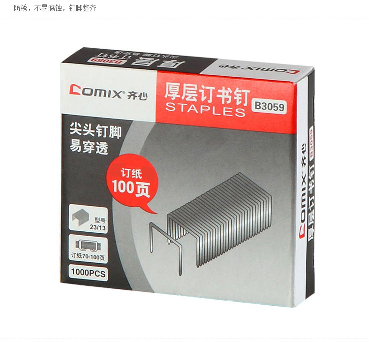 商品名称:齐心(COMIX)1000枚/纸盒订书钉100页 (23/13) 办公文具 B3059