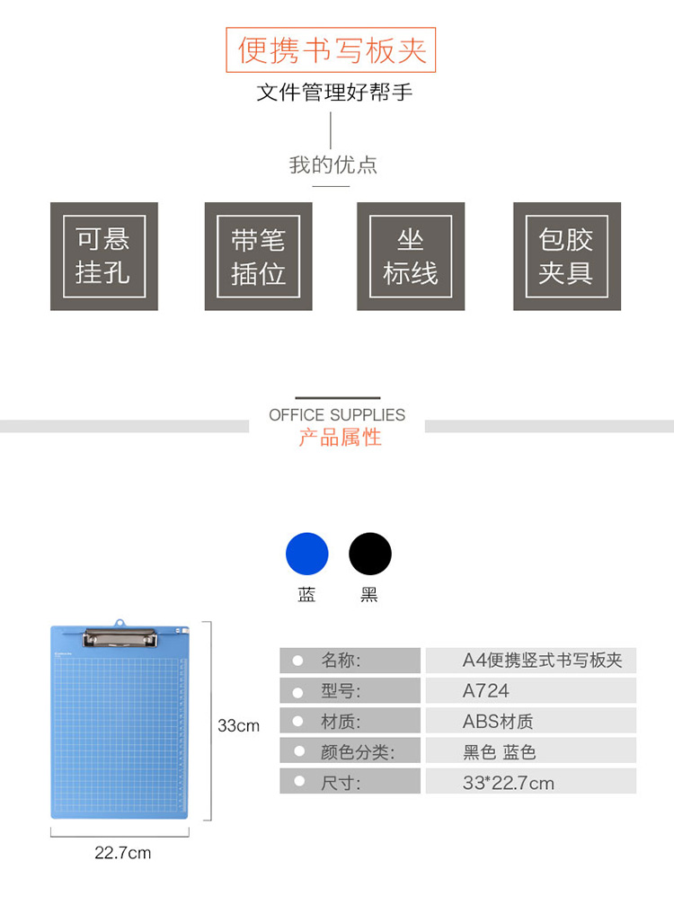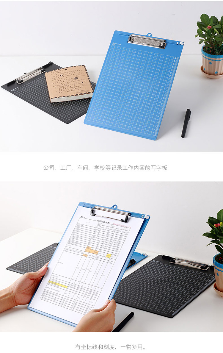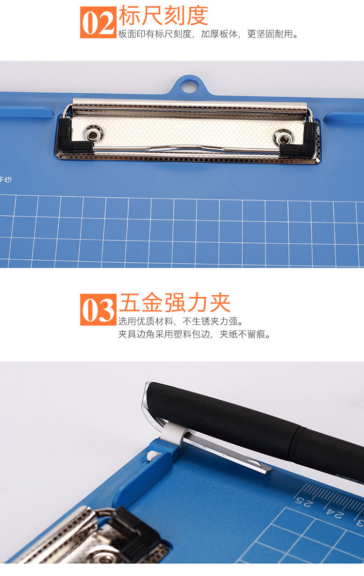 商品名称:齐心A724带刻度多功能书写板夹A4( 黑蓝色随机 )
