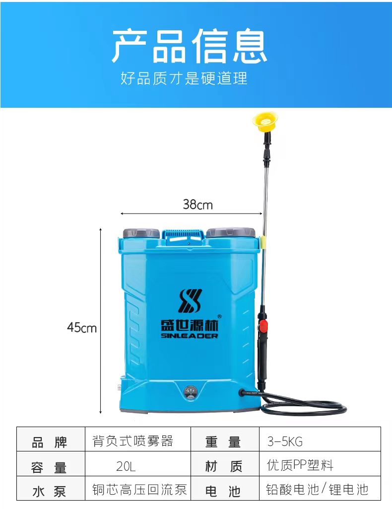 商品名称:盛世源林背负式电动喷雾器 20L 单位:台