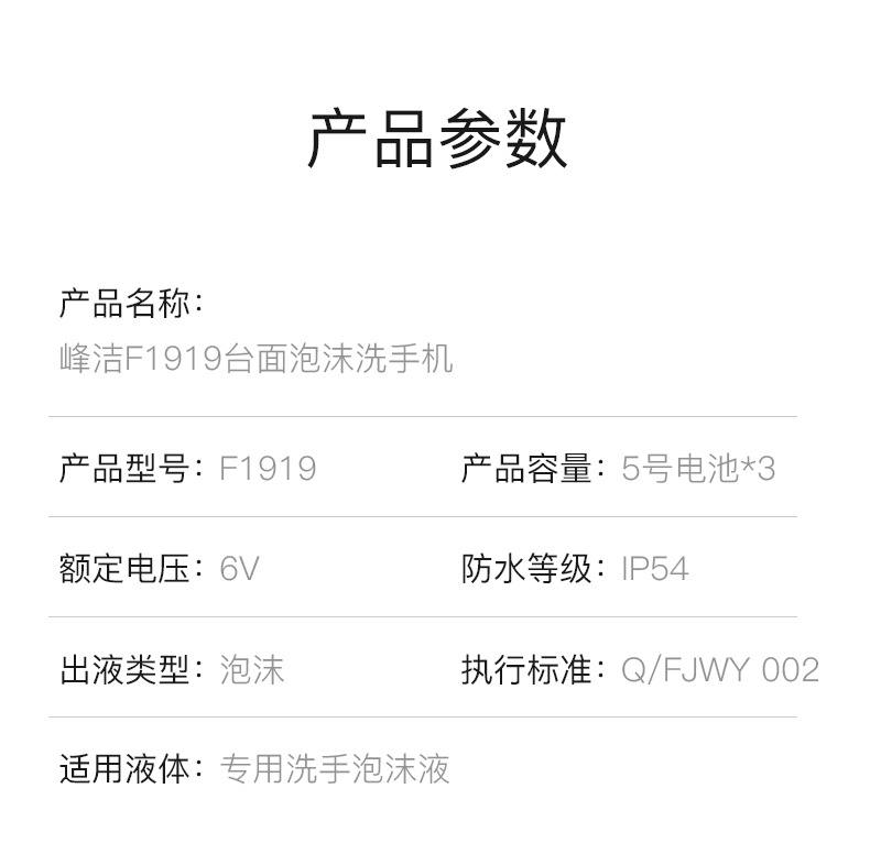 商品名称:峰洁F1919自动感应泡沫洗手机 单位:台