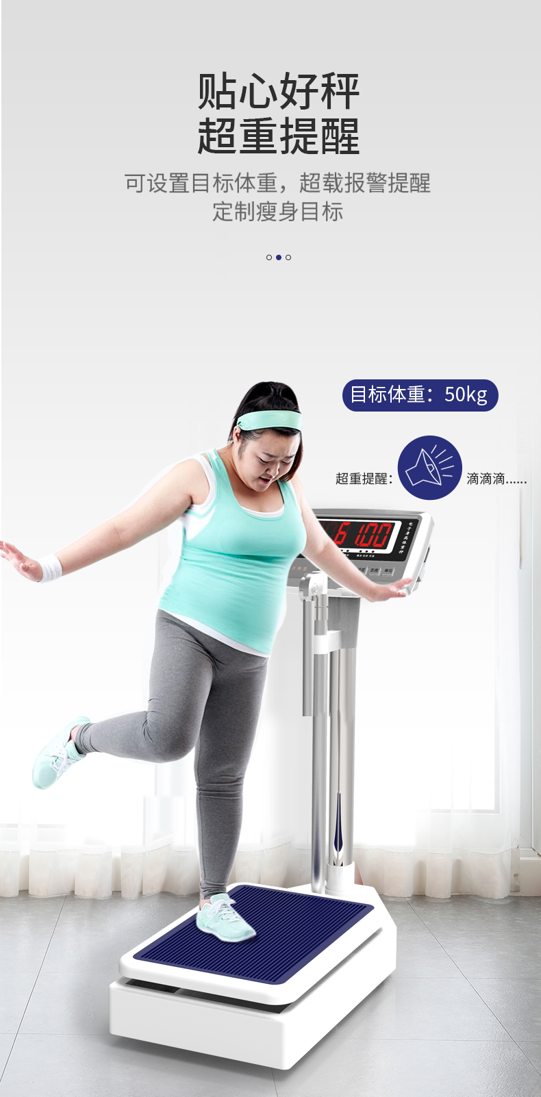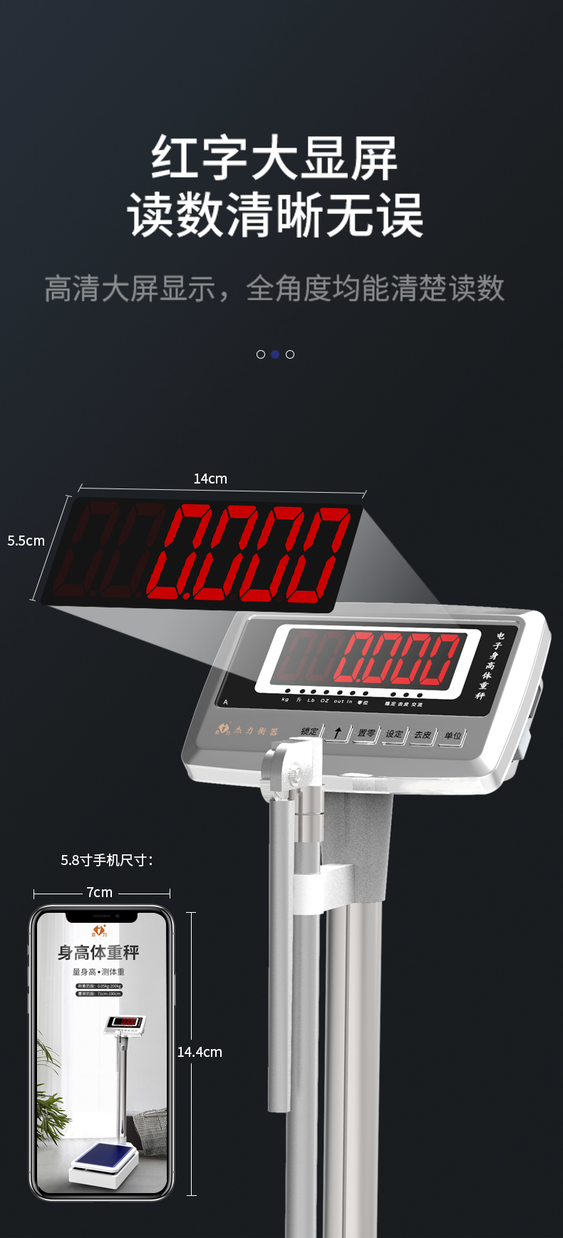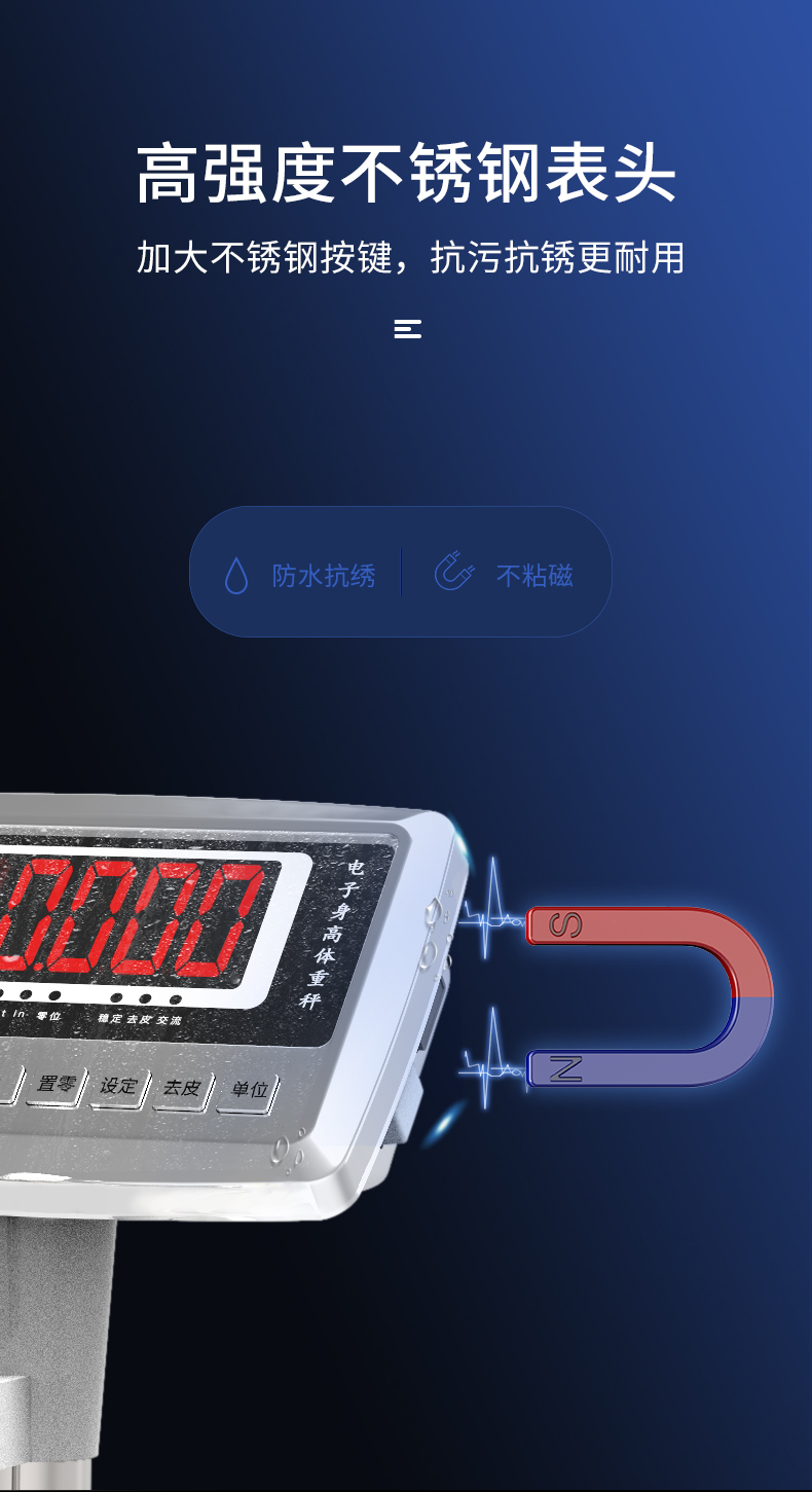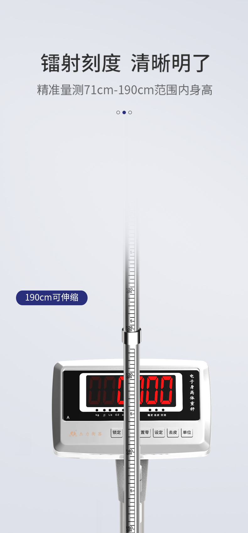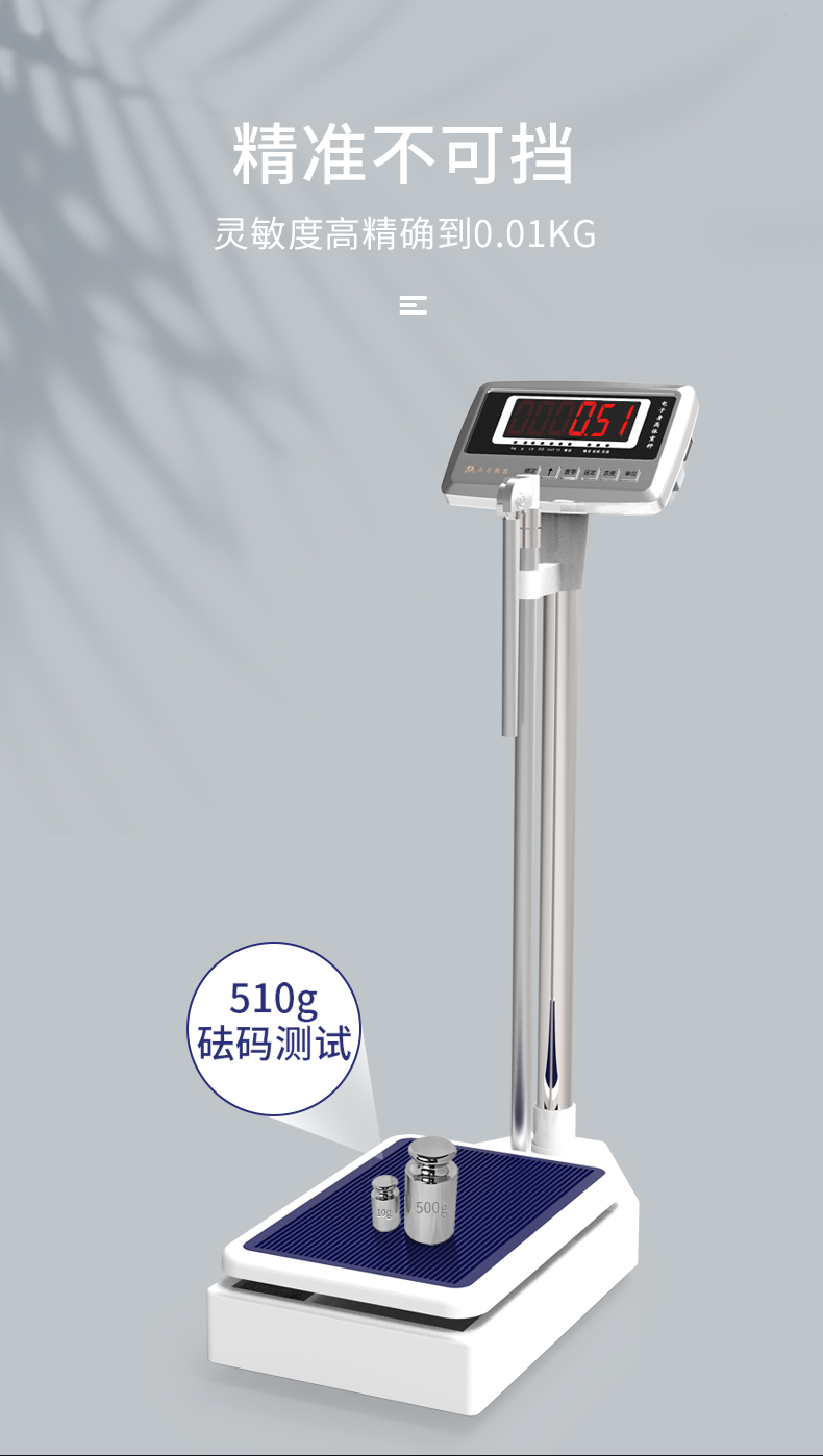 杰力身高体重秤 不锈钢按键 硅胶防滑垫 20克分度值 电池款 200kg