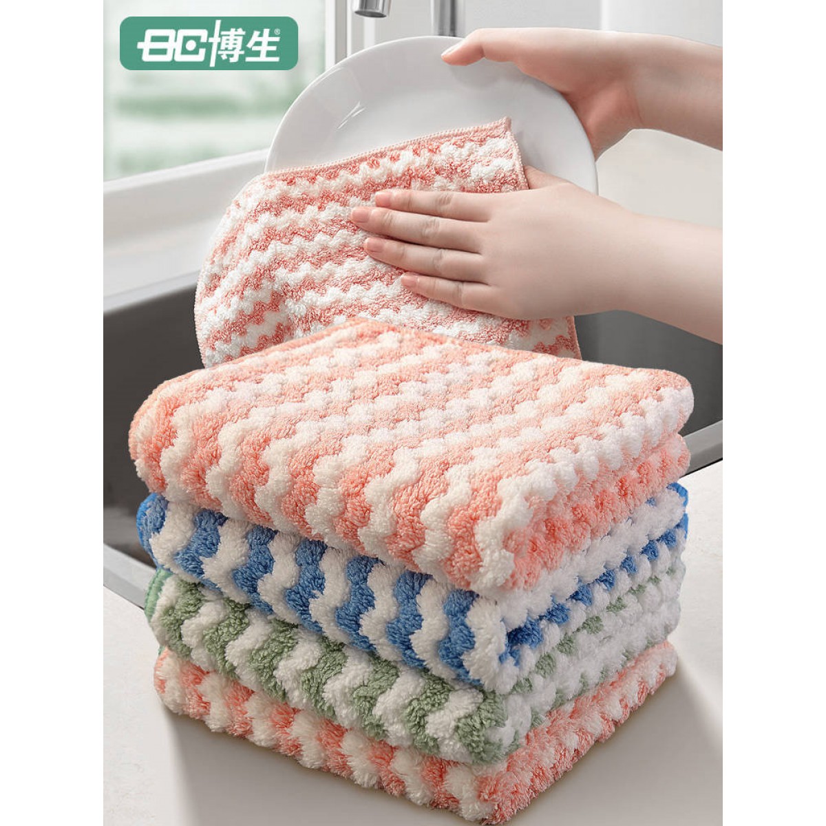 博生抹布洗碗布 加厚锁边款 250*250mm 颜色随机 单位:条