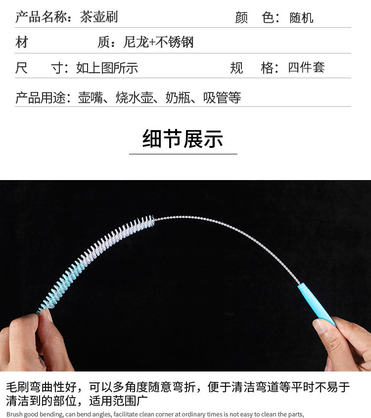 商品名称:茶壶刷 4件套 不锈钢+尼龙 单位:套