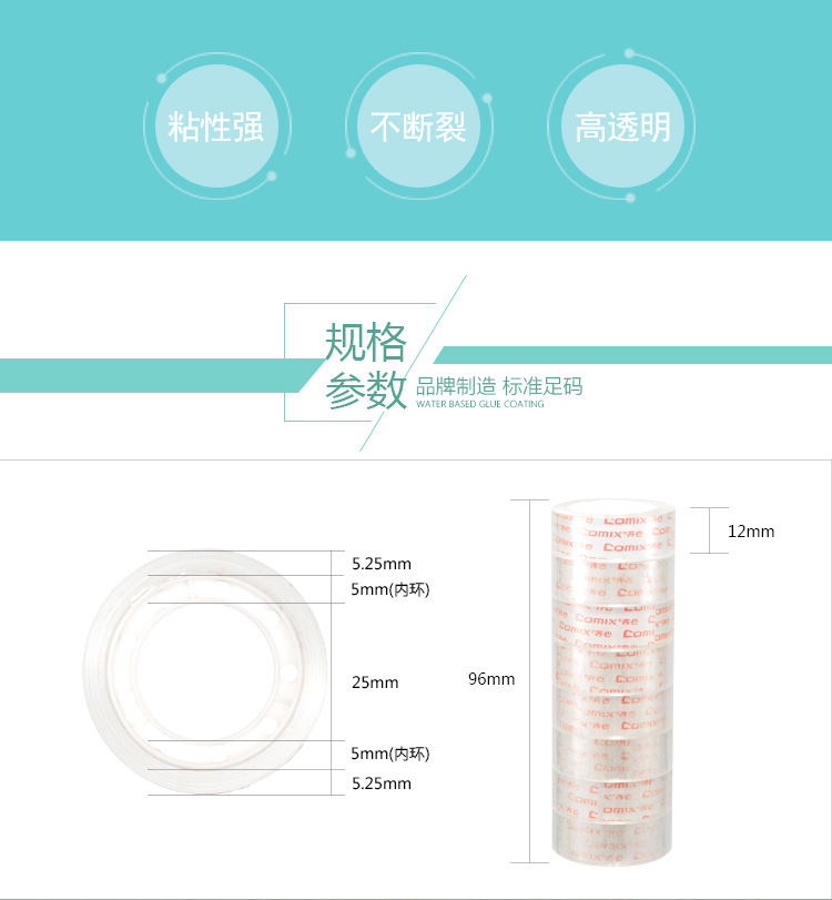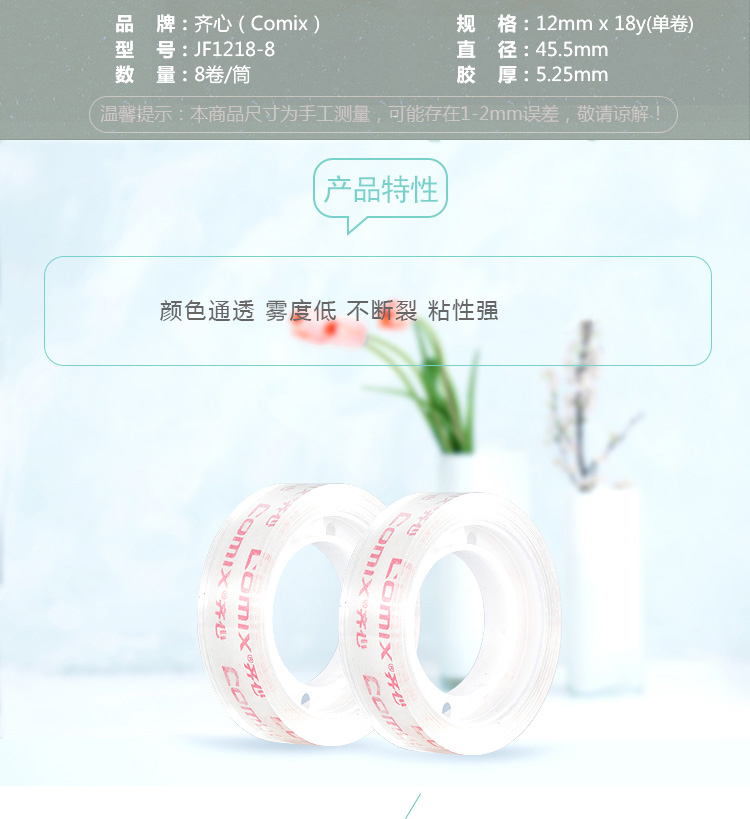 商品名称:齐心JF1218-8高透明胶带12mm*18y 16米 8卷装