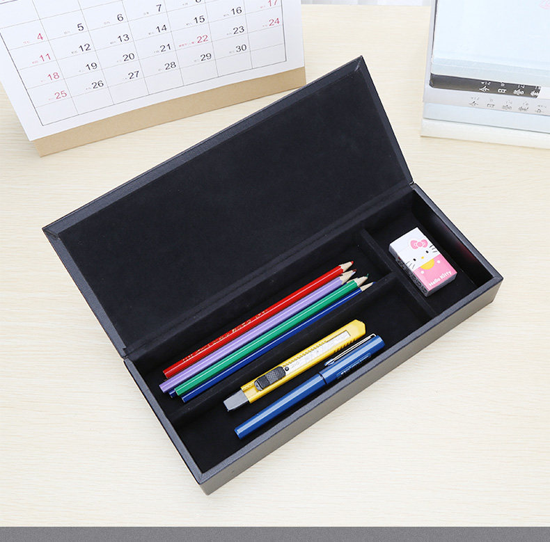 多功能皮革笔盒 带盖 黑色