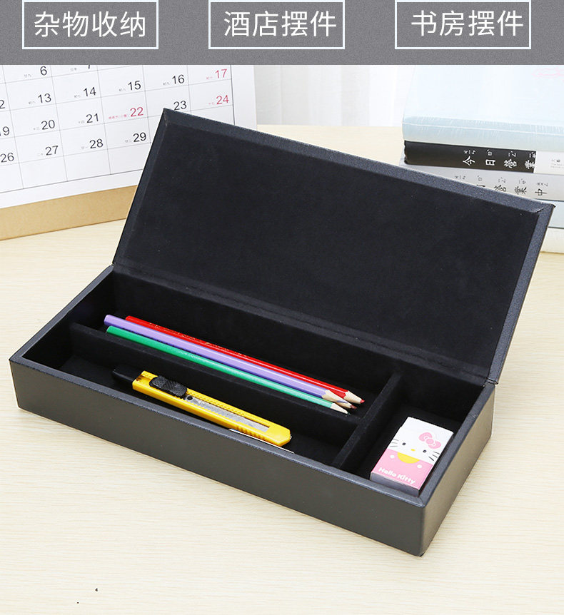 商品名称:多功能皮革笔盒 带盖 黑色 单位:个
