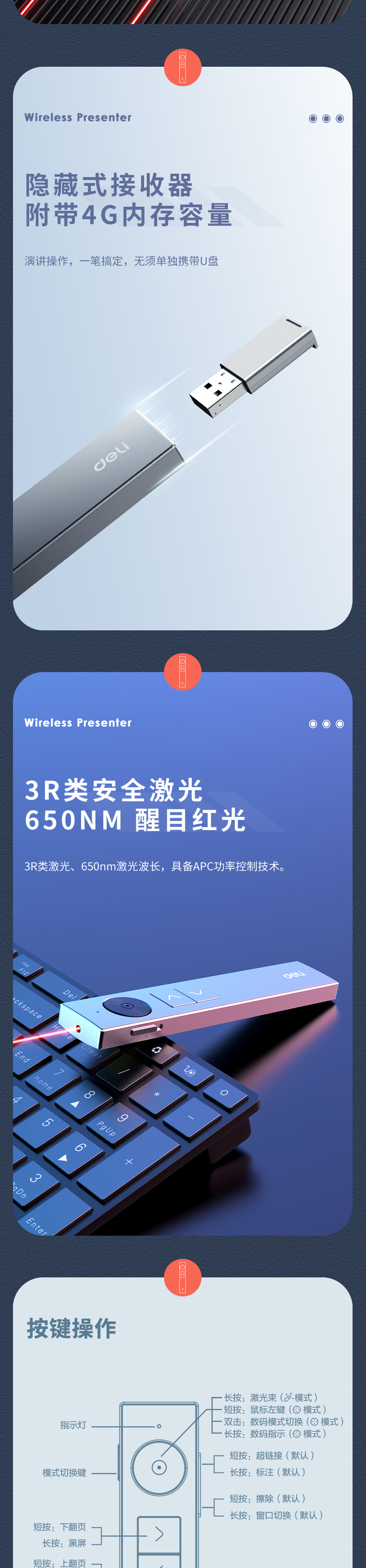 得力50682数码翻页笔 灰色 单位:支