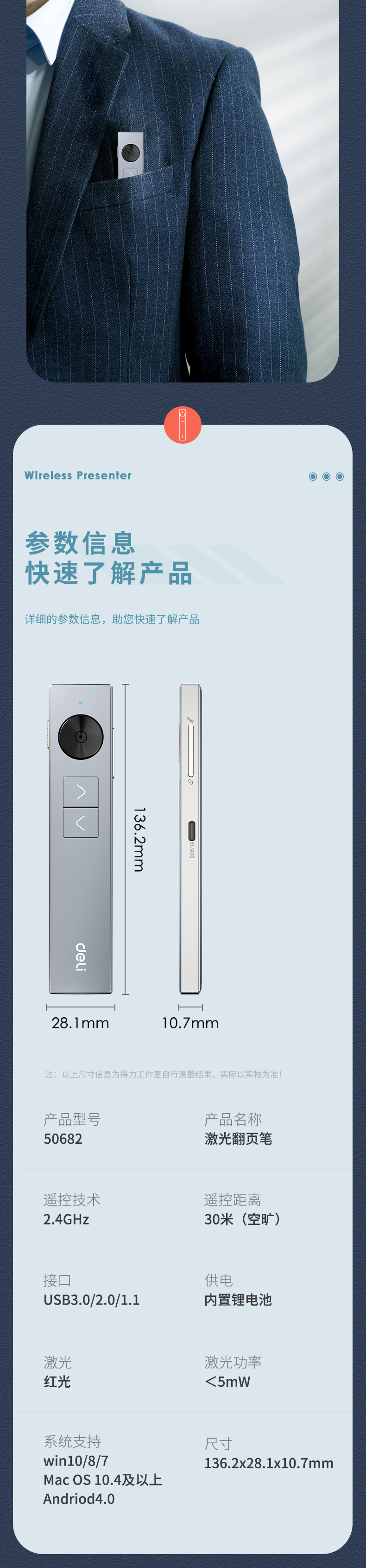 商品名称:得力50682数码翻页笔 灰色 单位:支