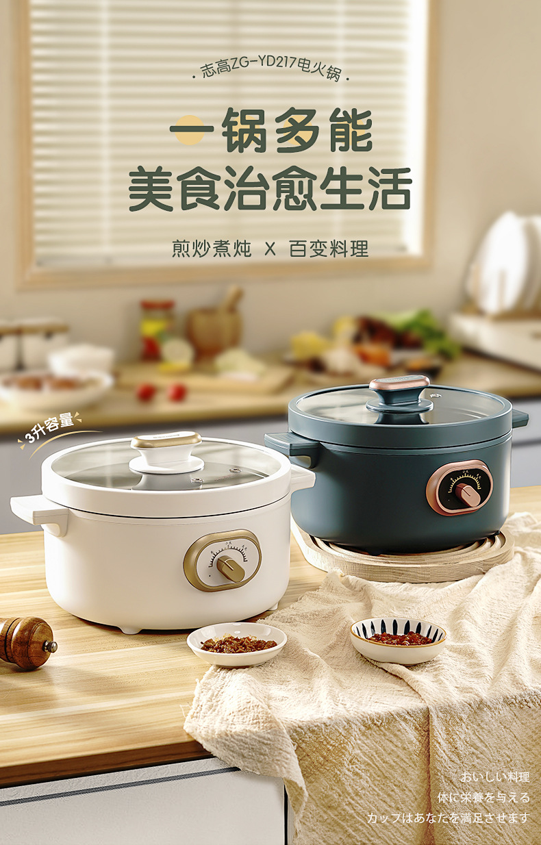 志高ZG-YD217多功能电煮锅 3L 典雅白 单位:台