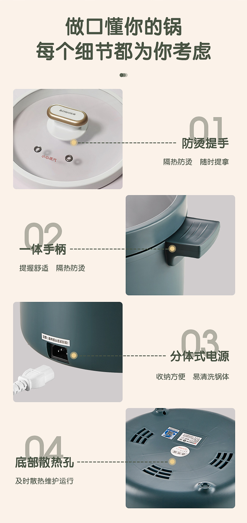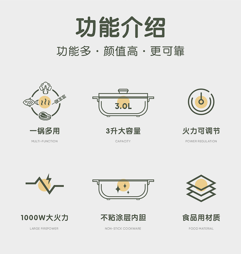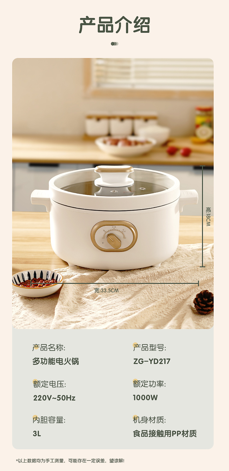 商品名称:志高ZG-YD217多功能电煮锅 3L 典雅白 单位:台