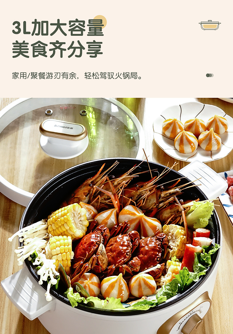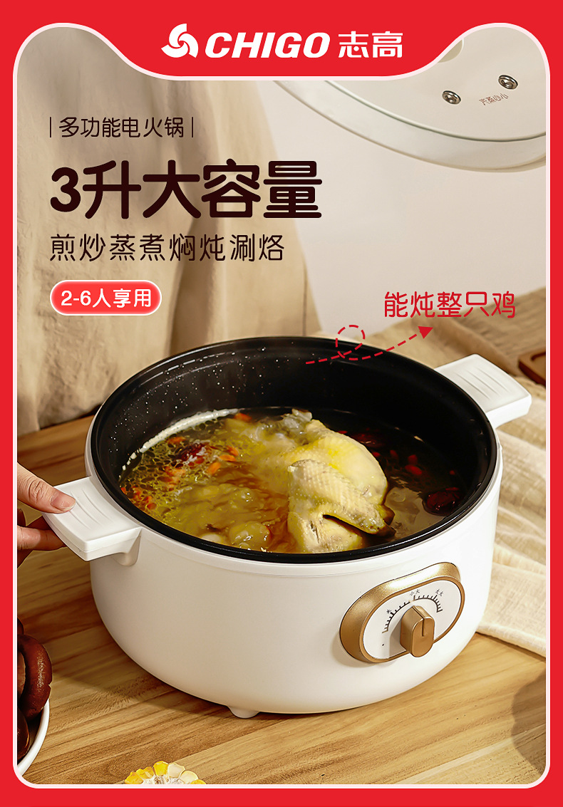 志高ZG-YD217多功能电煮锅 3L 典雅白