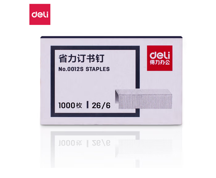 商品名称:得力0012S省力订书钉1000枚/盒(银灰)单位:盒