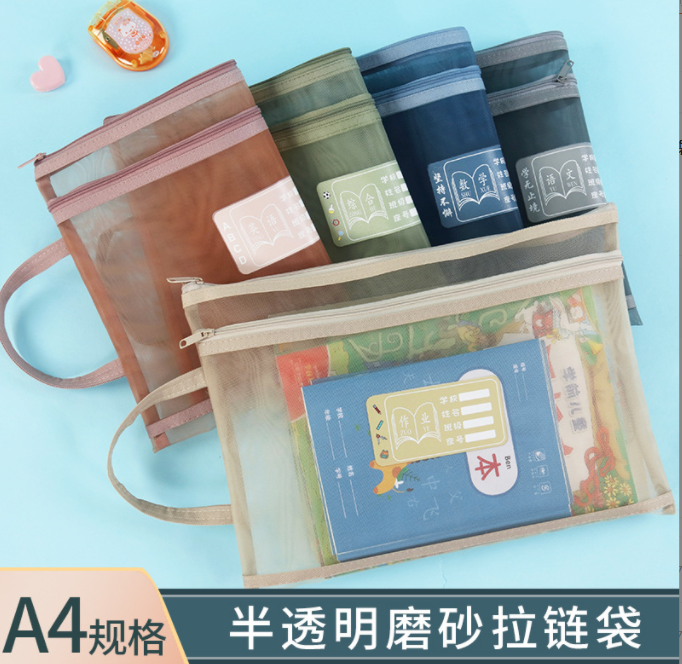 透明尼龙单层手提收纳袋A4 (粉色/蓝色)单位:个