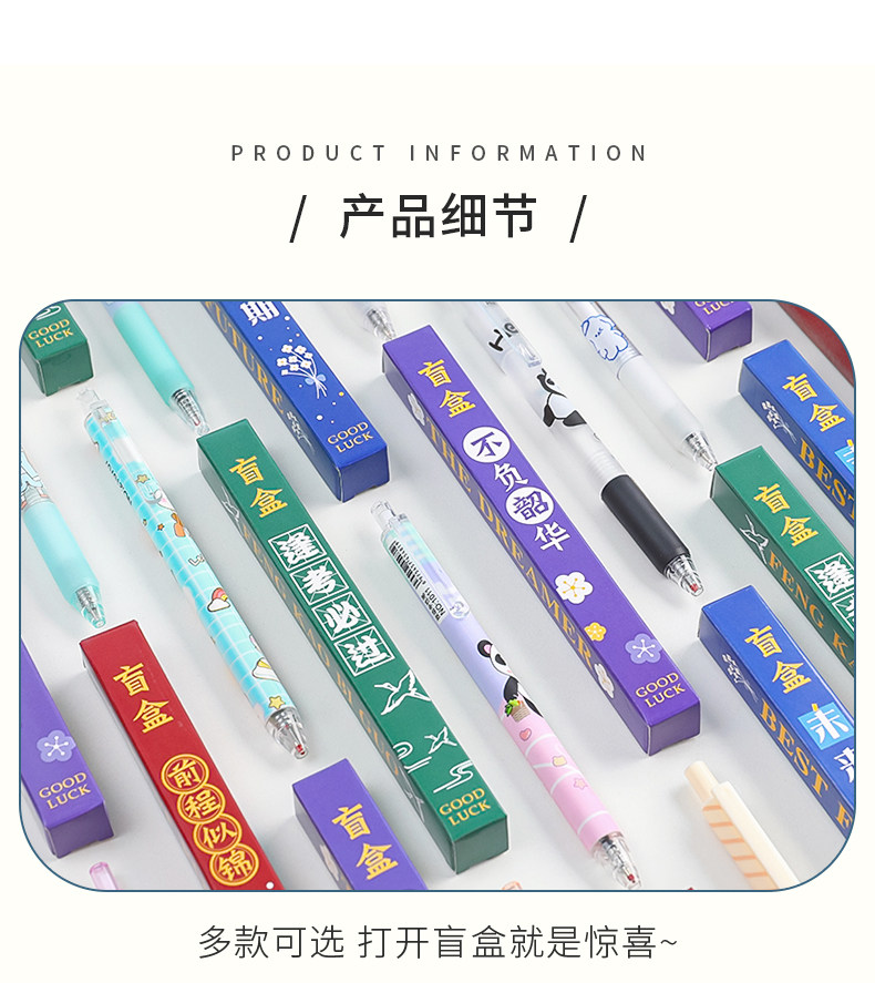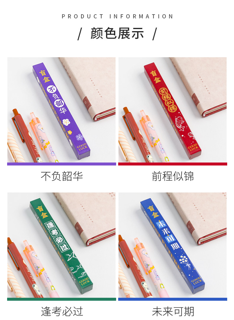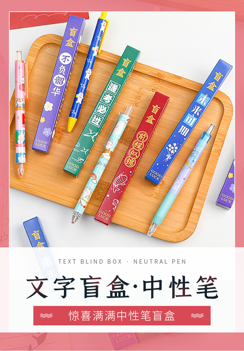商品名称:励志文具盲盒按动中性笔 100盒/组 单位:组