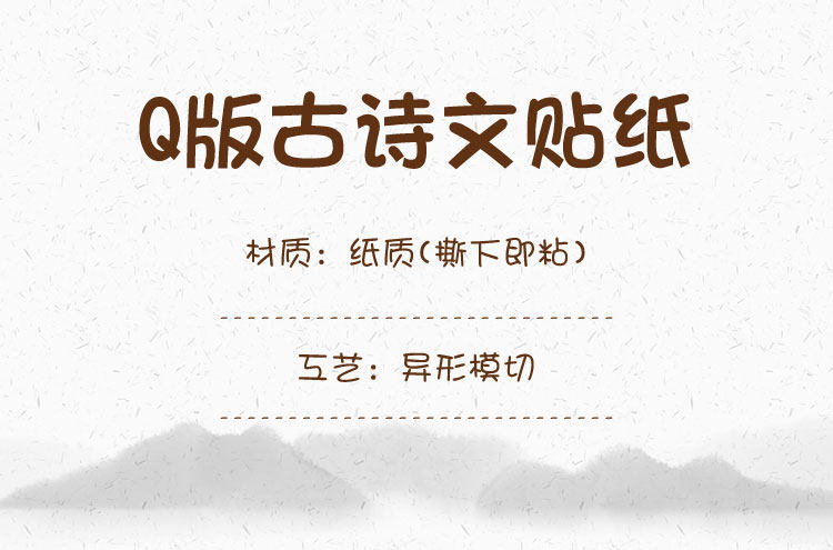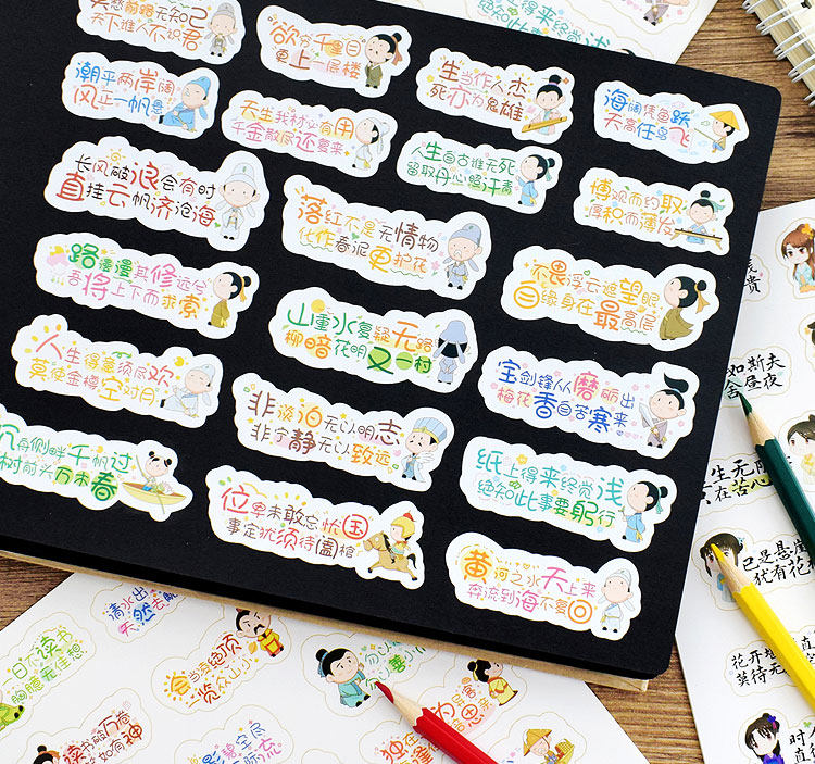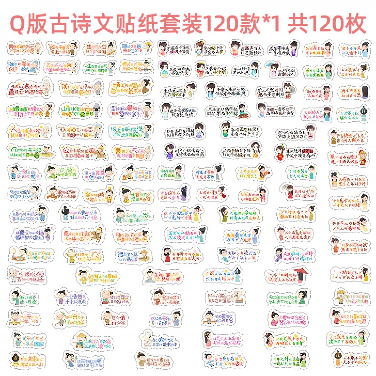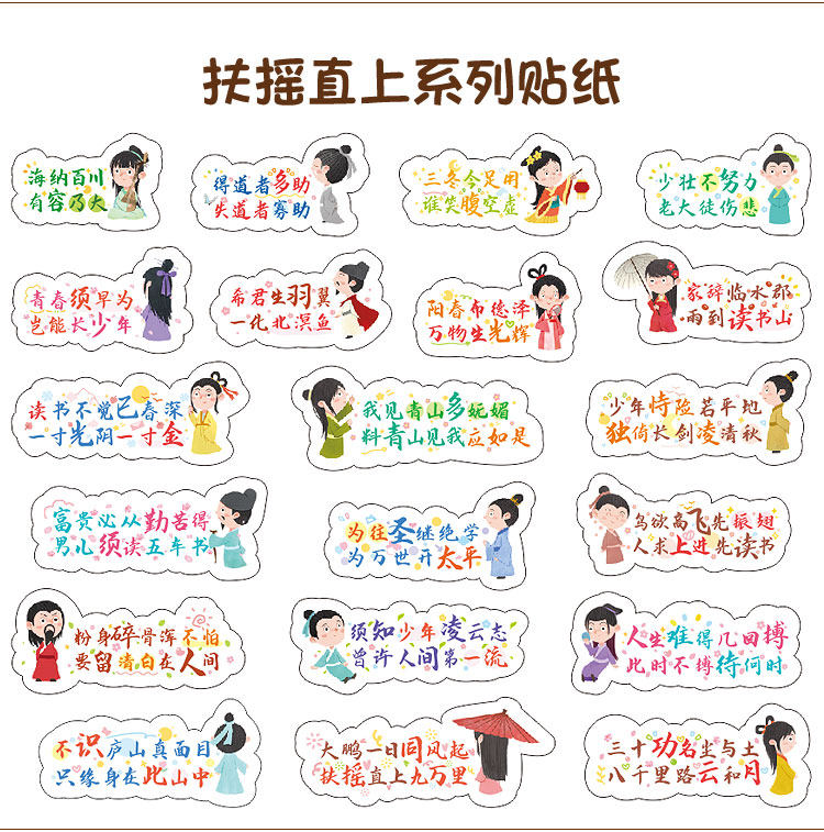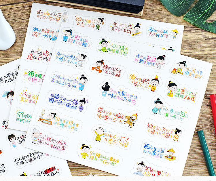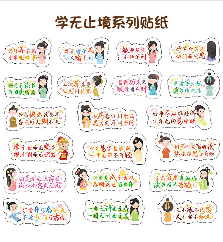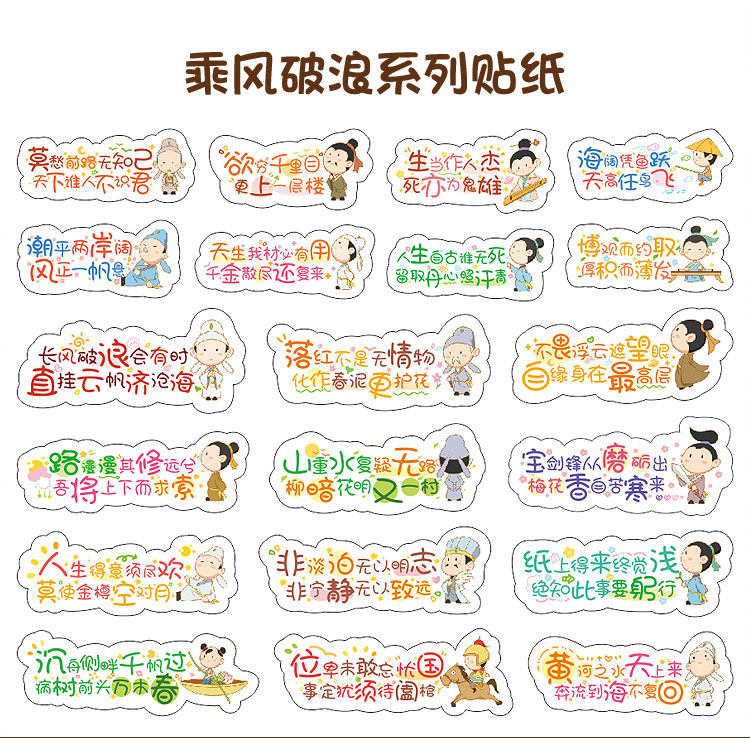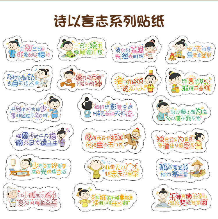 商品名称:励志古诗词贴纸 Q版古诗文贴纸120款混装120枚 单位:组
