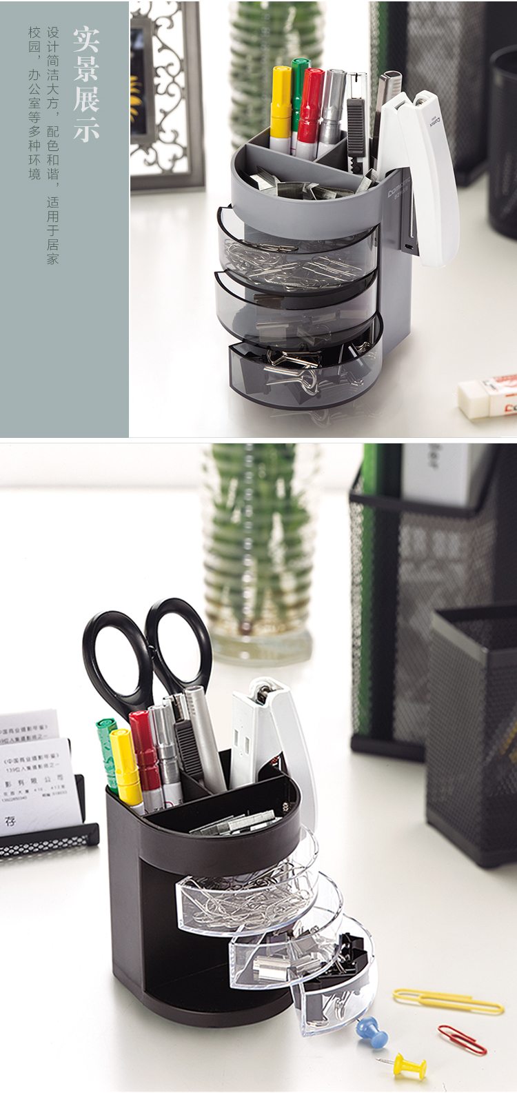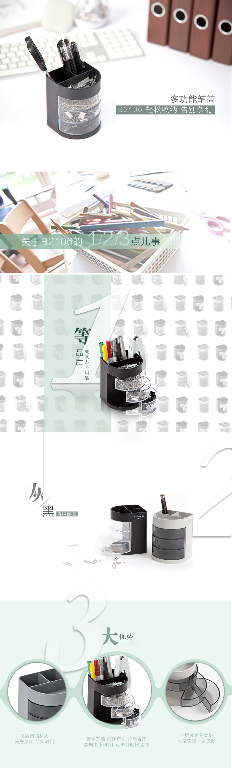 商品名称:齐心B2106三层多功能笔筒(黑.灰颜色随机)