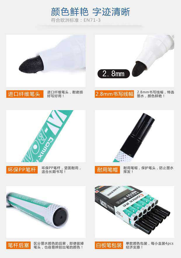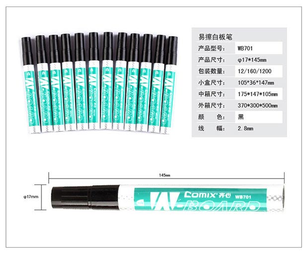 商品名称:齐心WB701黑色易擦无害白板笔 一盒12支