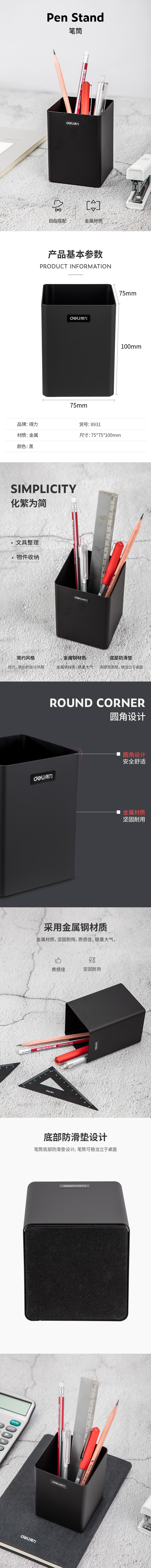 商品名称:得力8931笔筒 黑色 单位:个