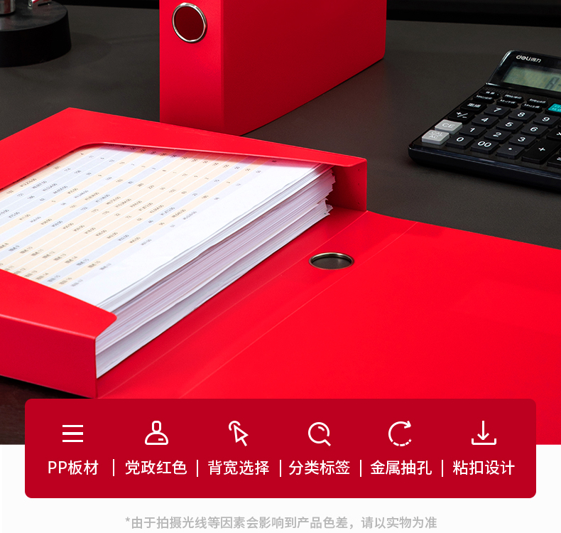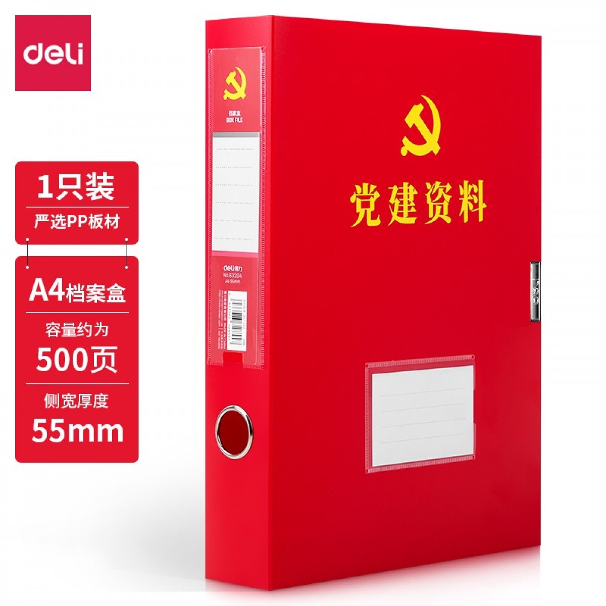 商品名称:得力63204中国红档案盒 55mm 12个/包 单位:个