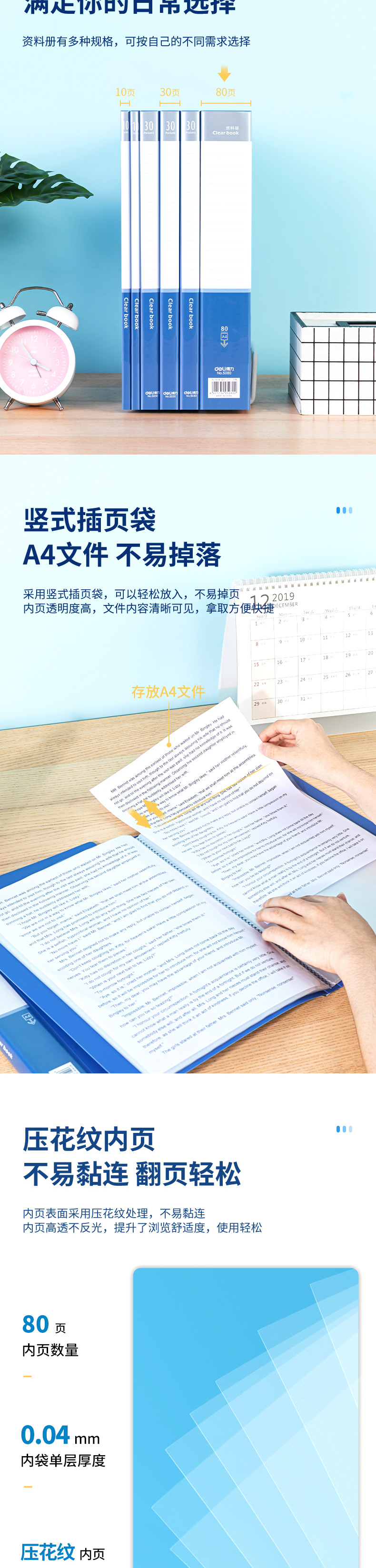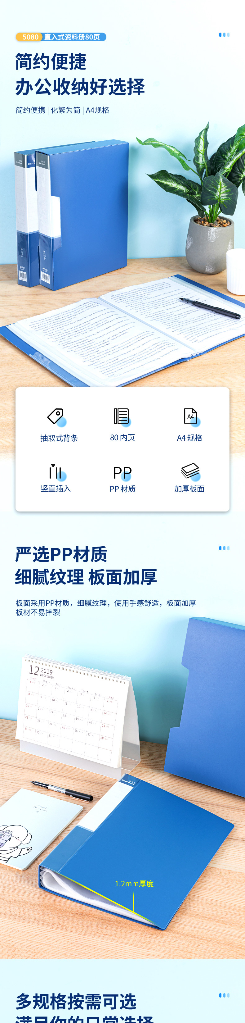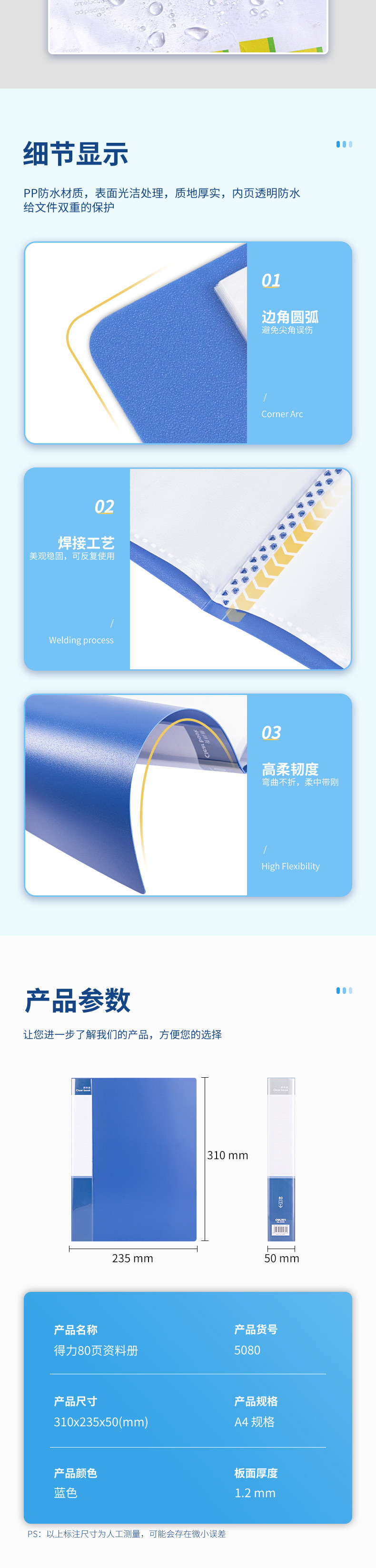 商品名称:得力5080资料册 80页 蓝色 单位:个