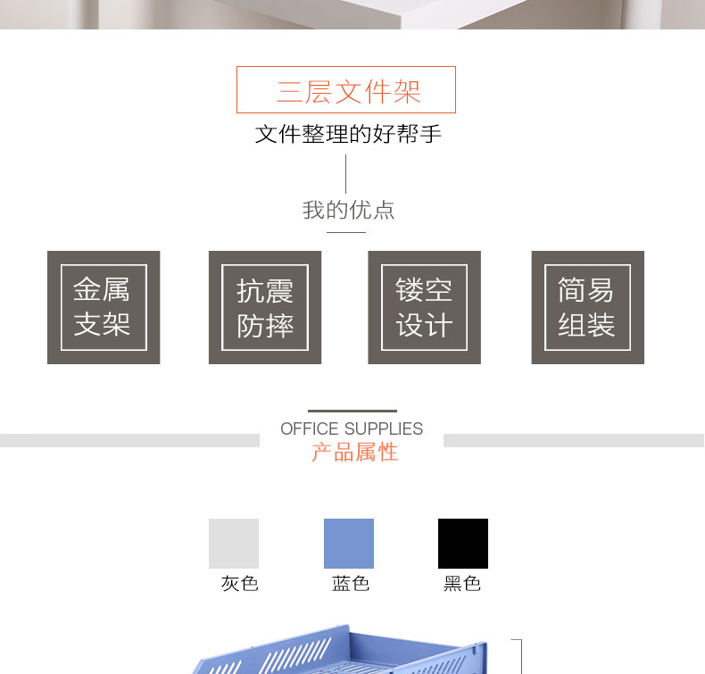 商品名称:齐心(Comix) B2060 稳固型三层文件盘/文件座/文件框/文件架 黑色 办公文具