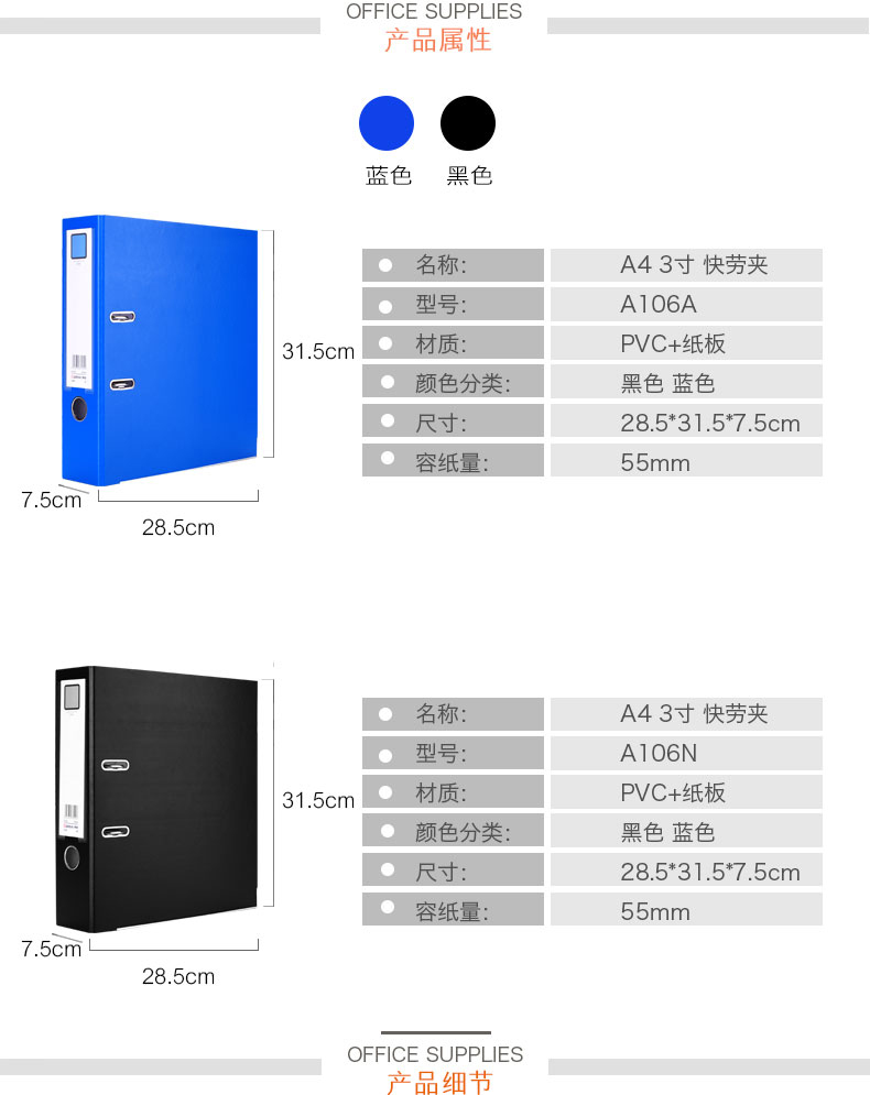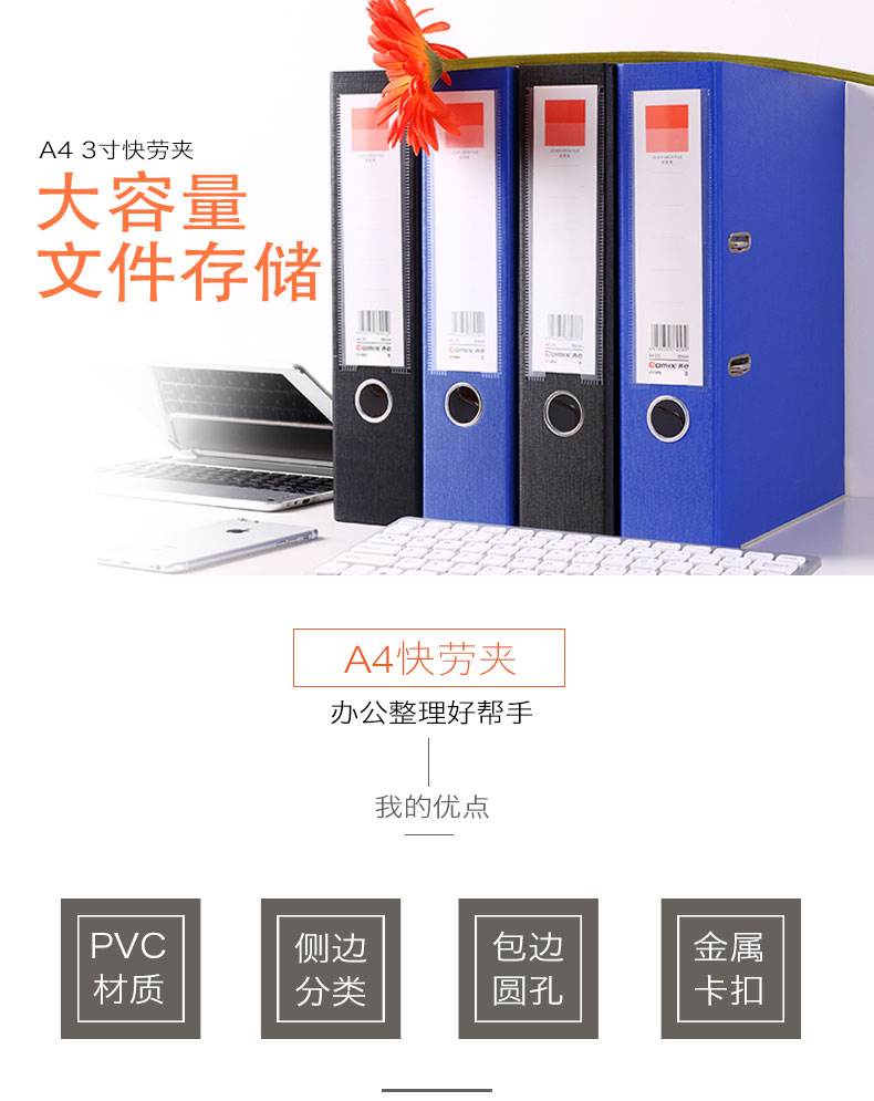商品名称:齐心(Comix) A106N 加强型快劳夹/A4文件夹 黑色 办公文具
