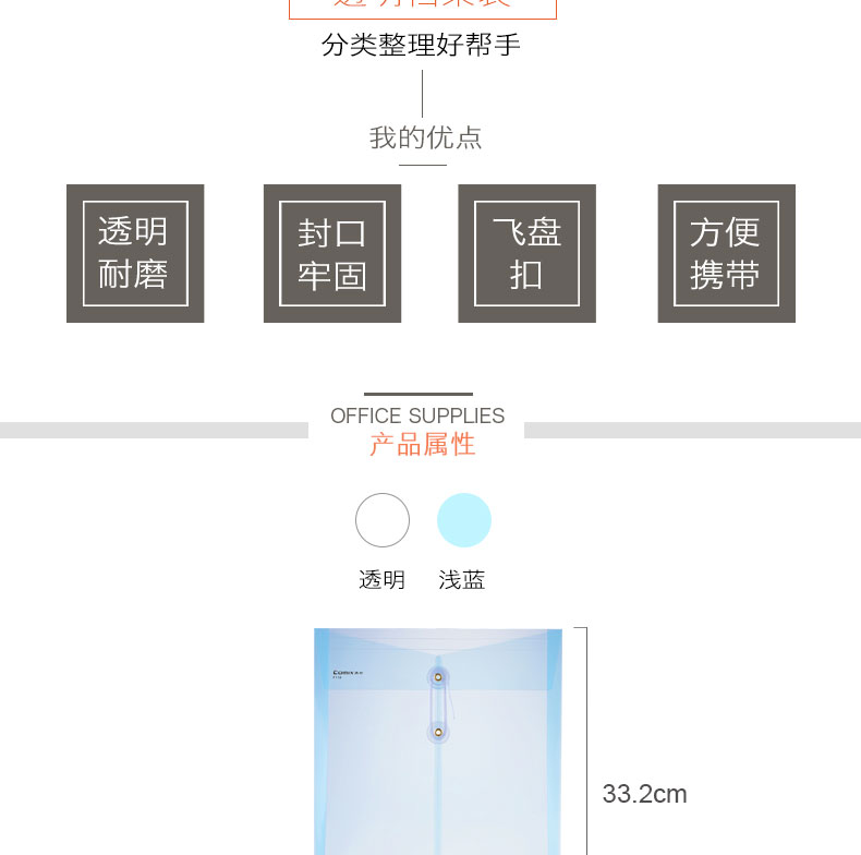 商品名称:齐心(Comix) 10个装 F118 A4透明绕绳档案袋/文件袋/资料袋 竖式 白色 办公文具