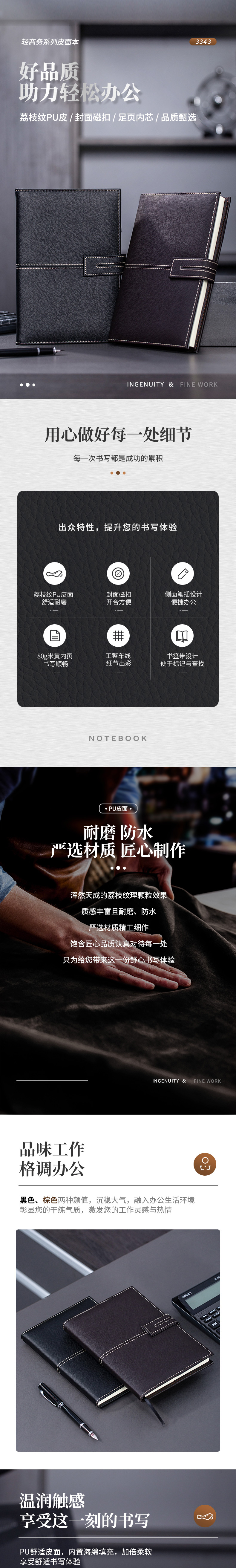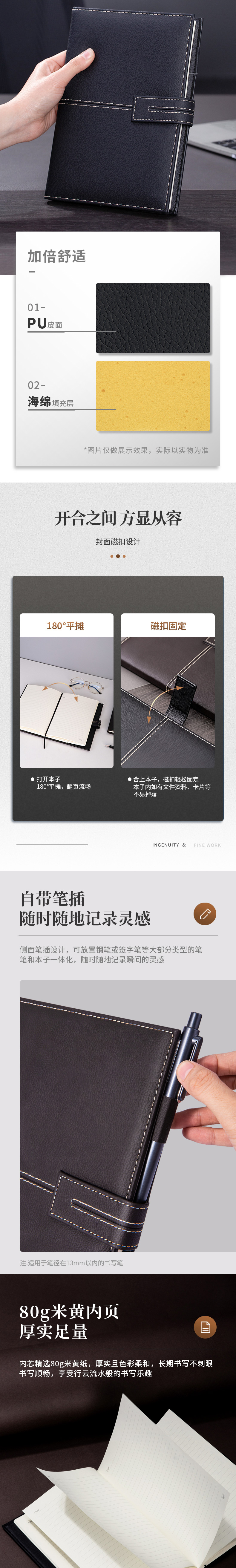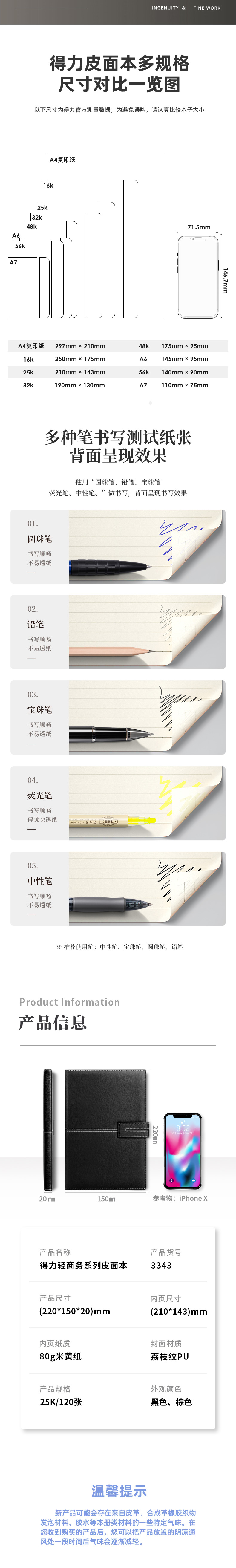 商品名称:得力3343单包插芯皮面本 25K 210mm*143mm 120张/本 黑色 单位:本