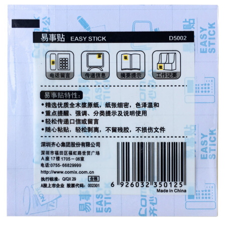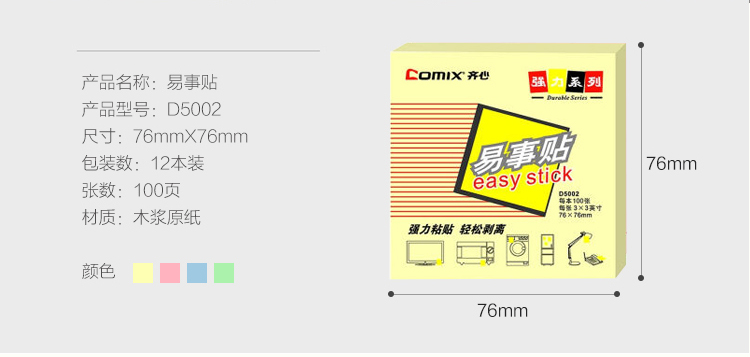 商品名称:齐心(COMIX) D5002 便利贴/便签纸/便签本/易事贴(76x76mm) 12本/包