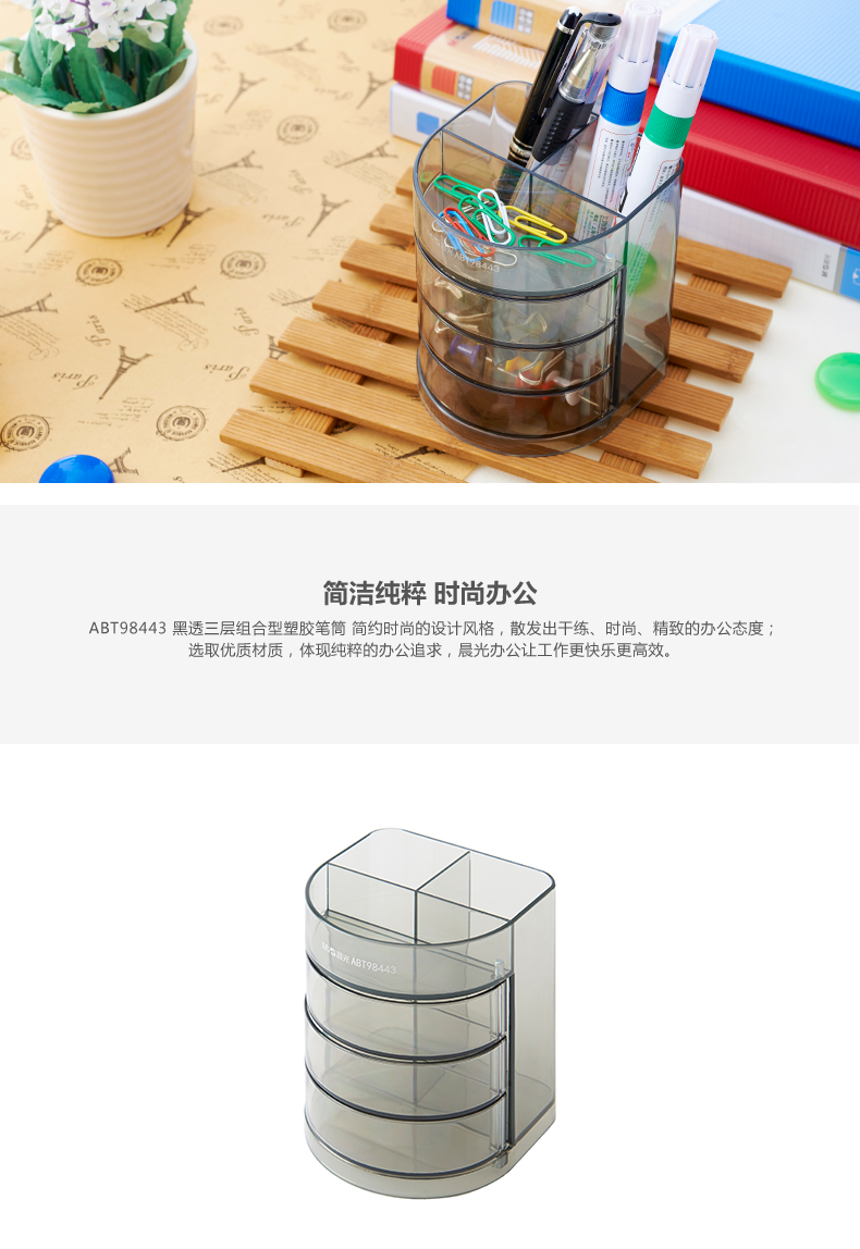 商品名称:晨光ABT98443黑透组合型塑胶笔筒 三层 单位:个