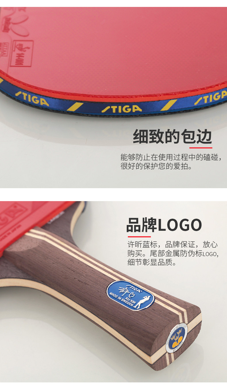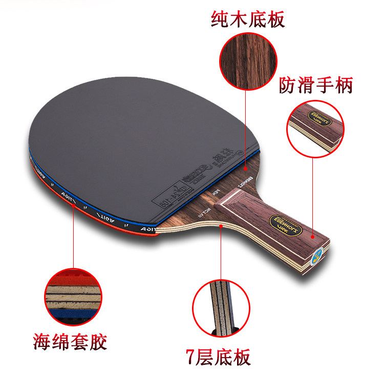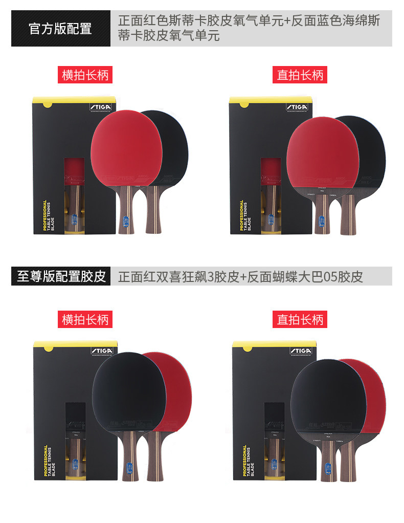斯蒂卡乒乓球拍 黑檀7直拍短柄官方版 双面胶皮 单位:只