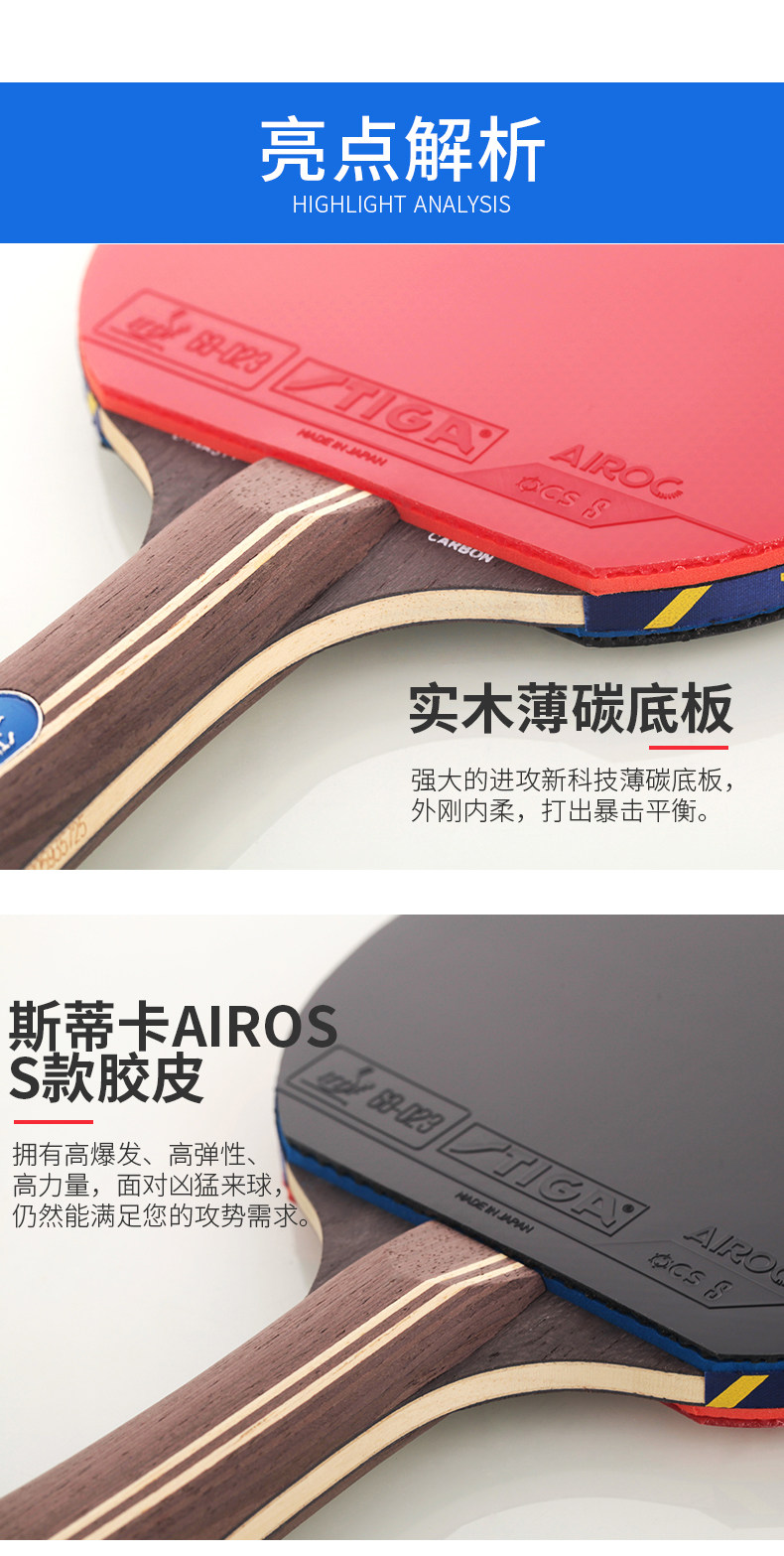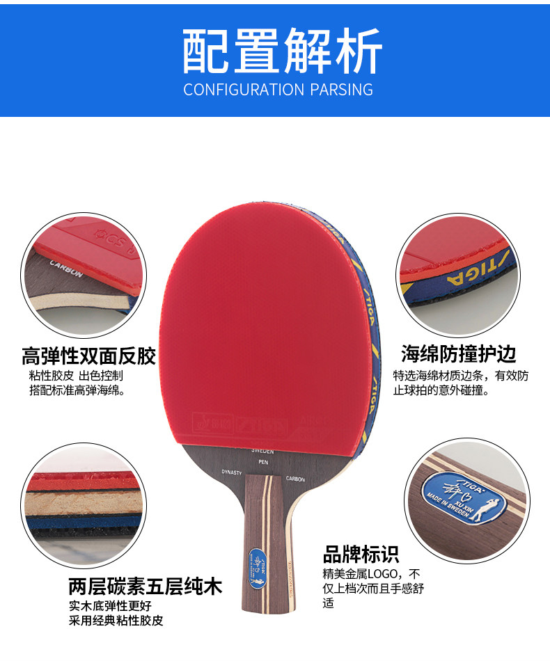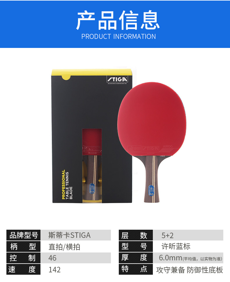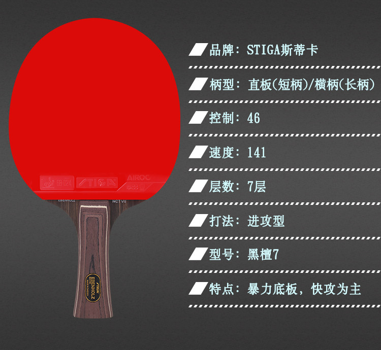 商品名称:斯蒂卡乒乓球拍 黑檀7直拍短柄官方版 双面胶皮 单位:只