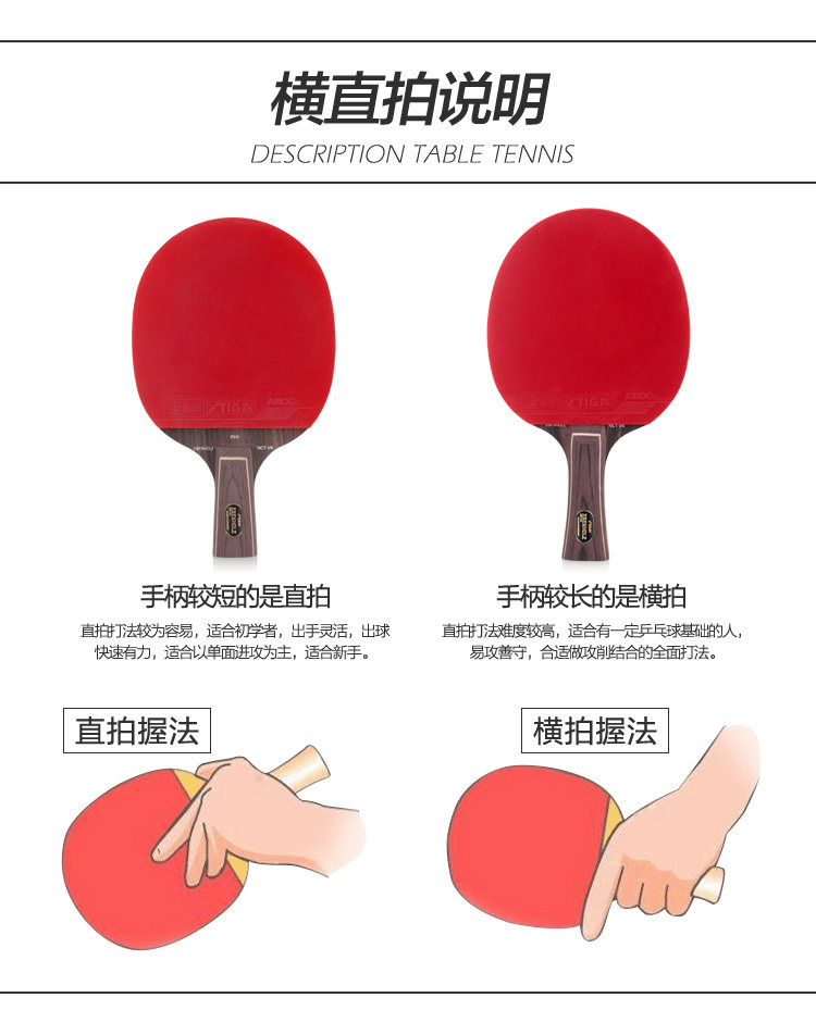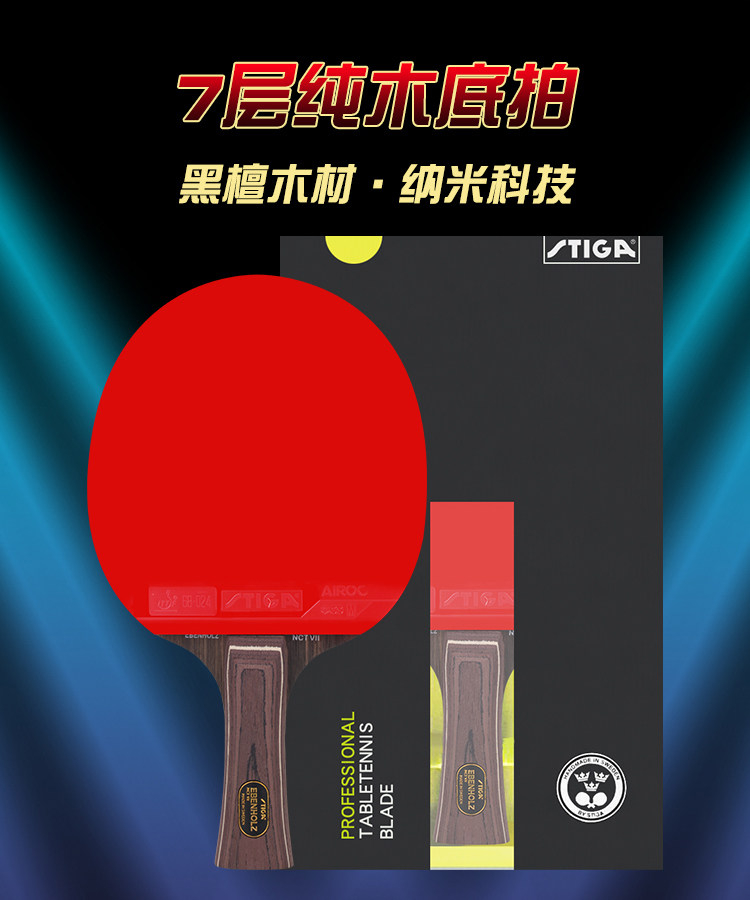 斯蒂卡乒乓球拍 黑檀7直拍短柄官方版 双面胶皮