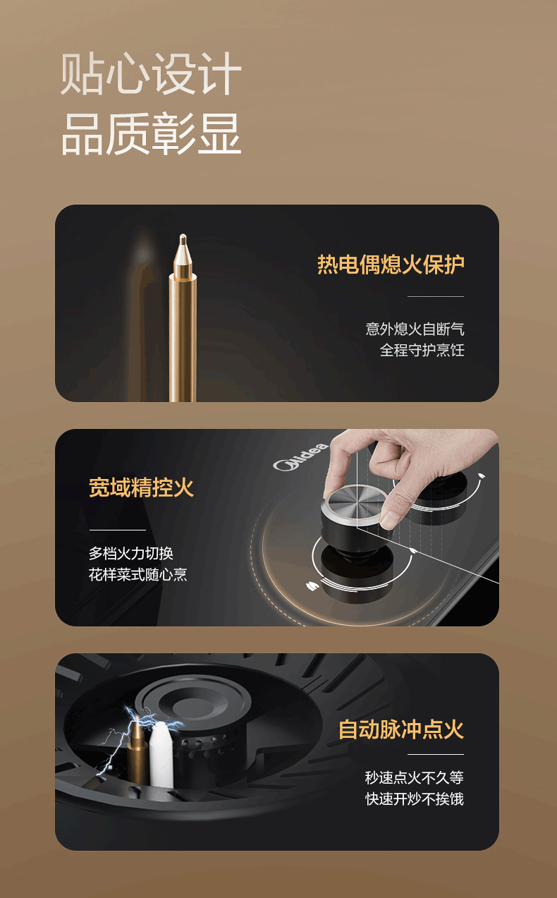 美的JZT/Y-Q313-M燃气灶 双灶具 5.0kW 160mm大火盖 旋风匀火 单位:个