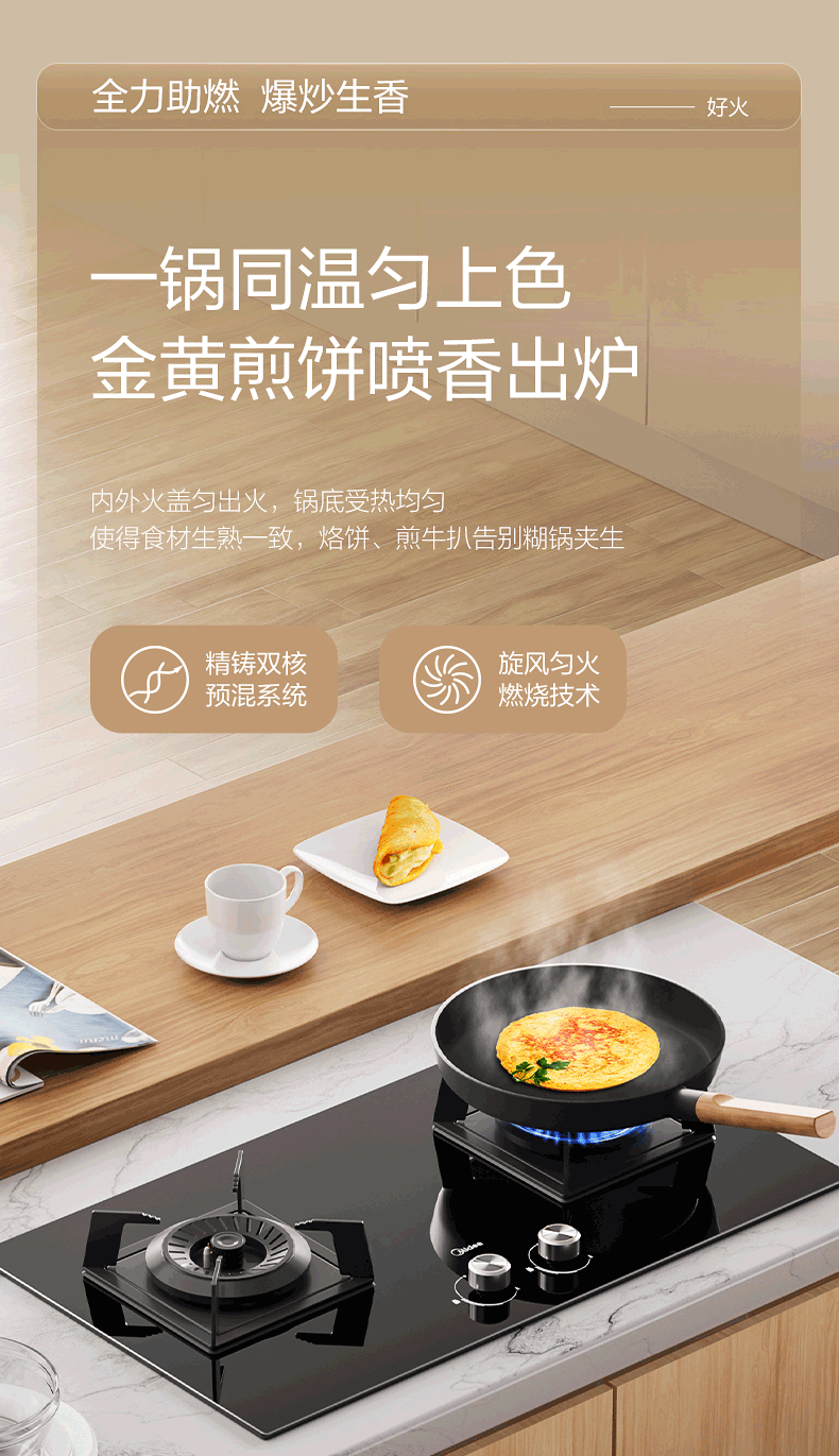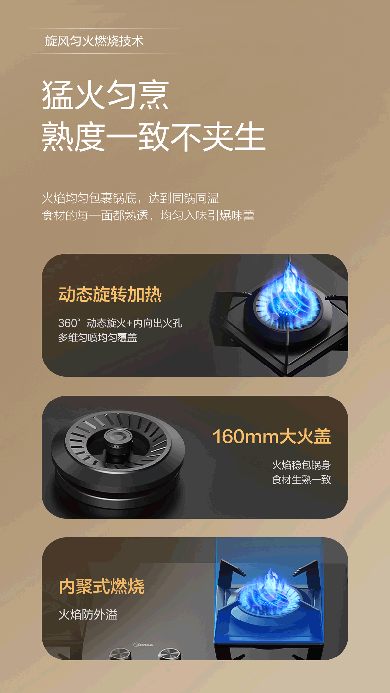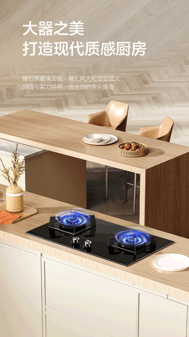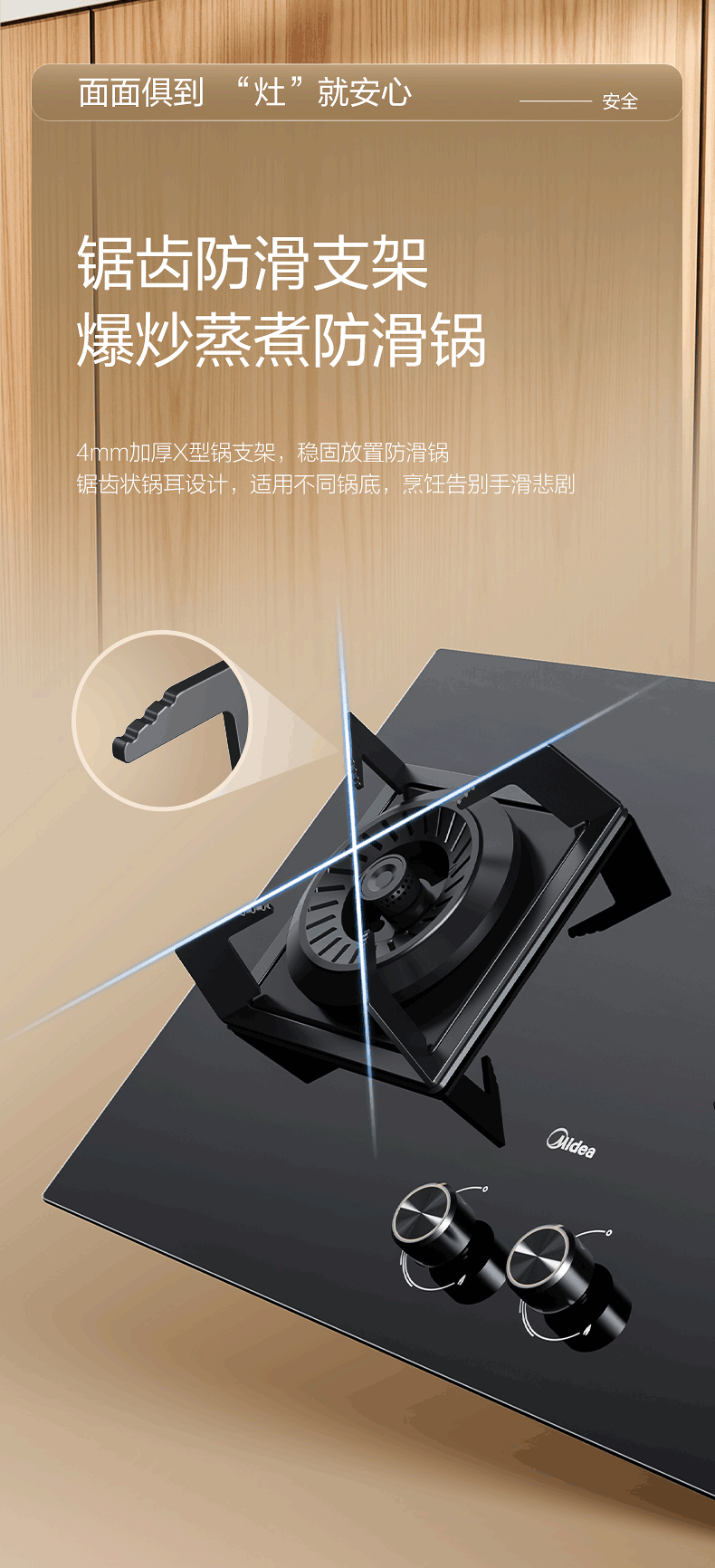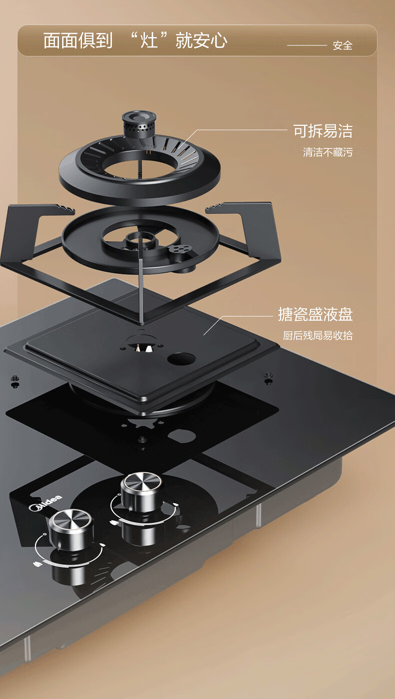 美的JZT/Y-Q313-M燃气灶 双灶具 5.0kW 160mm大火盖 旋风匀火