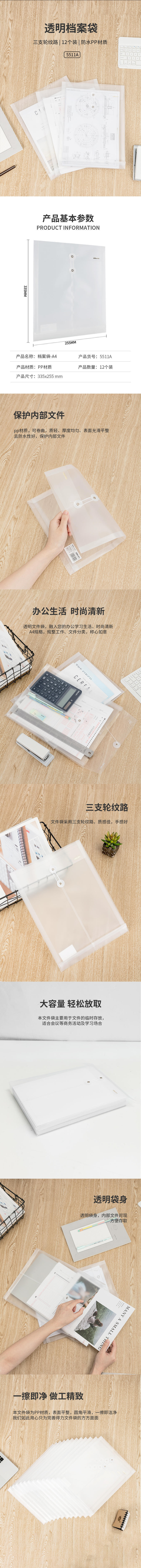 商品名称:得力5511A档案袋 透明 12个/包 单位:个