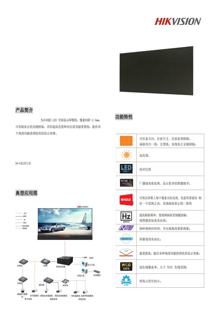 海康威视DS-CK20FI/H LED全彩显示屏13.824㎡ (含:接收系统、拼接处理器、电源、屏控制软件、支架、配电柜、工程线缆及安装调试)