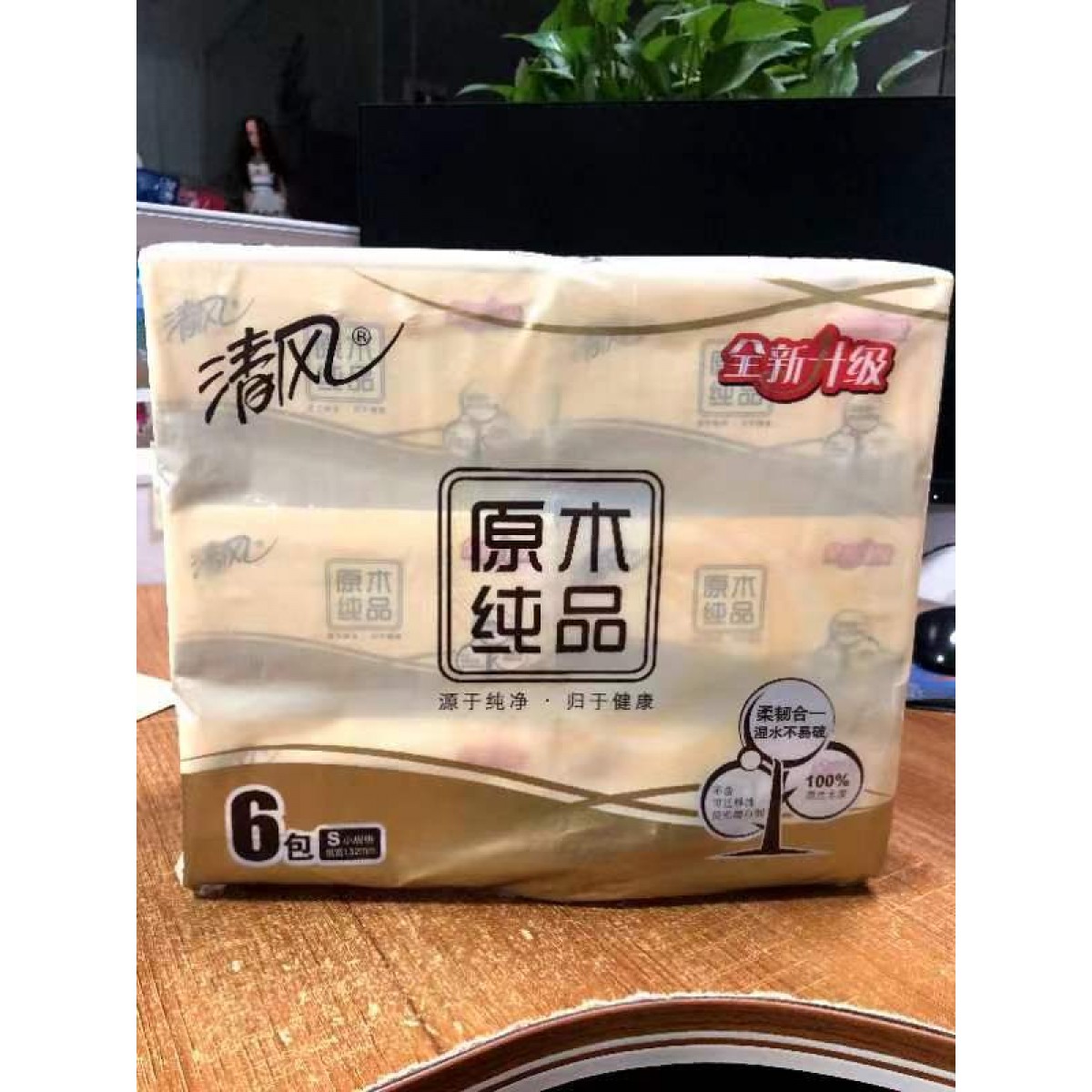 清风BR67SCN2原木抽纸S码 180抽/包 6包/提 8提/箱 单位:提