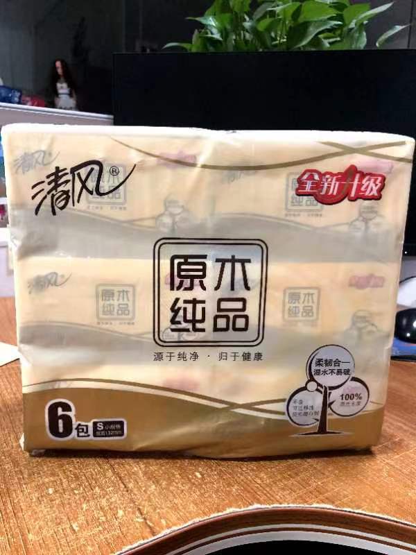 商品名称:清风BR67SCN2原木抽纸S码 180抽/包 6包/提 8提/箱 单位:提